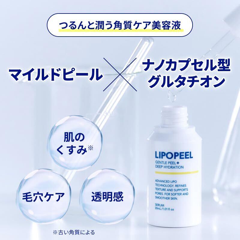 LIPOPEEL(リポピール) [30ml] 角質 毛穴ケア 導入美容液 マイルドピール × ナノカプセル型グルタチオン配合 敏感肌パッチテスト済み AHA BHA PHA ナイアシンアミド ビタミンC誘導体 毛穴 くすみ 乾燥