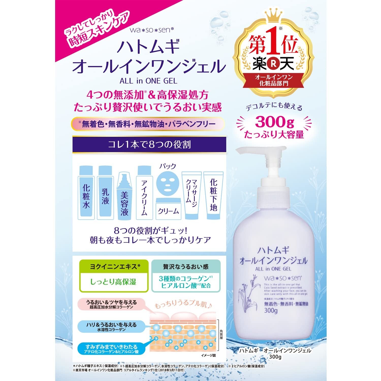 【2022最新】wa*so*sen(ワソウセン) ハトムギ オールインワンジェル 詰替え (250g)
