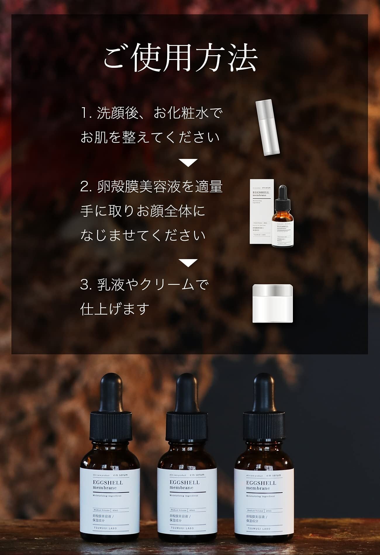 【卵殻膜 原液90%配合】ワンランク贅沢なスキンケアをお試しください。