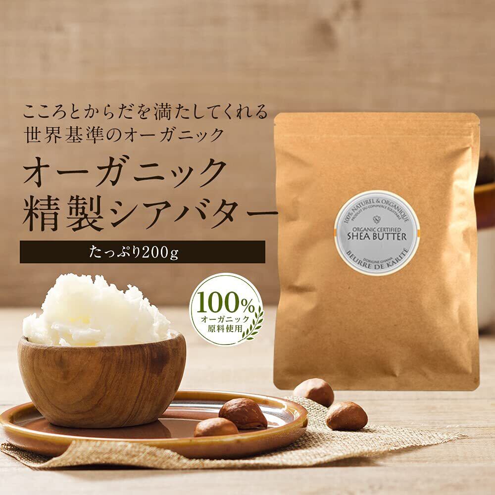 オーガニック 精製 シアバター200g 精製シアバター 100% オーガニック 天然 スキンケア ヘアケア マッサージ ボディオイル ヘアオイル ネイルケア ACO認定