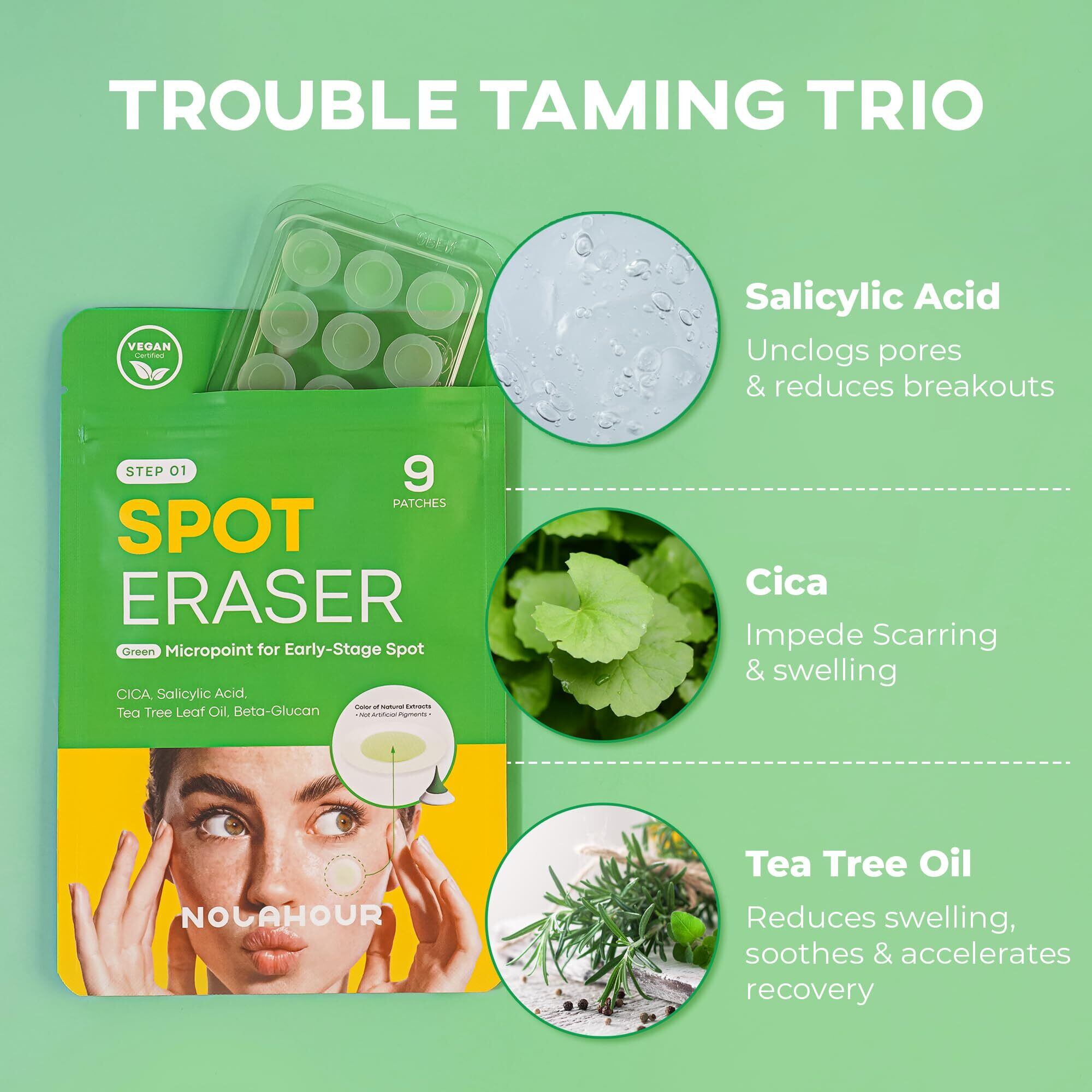 NOLAHOUR スポットイレイザー グリーン マイクロニードルパッチ ティーツリー葉油 マデカソシド シカ ニキビパッチ 9枚入り にきびパッチ
