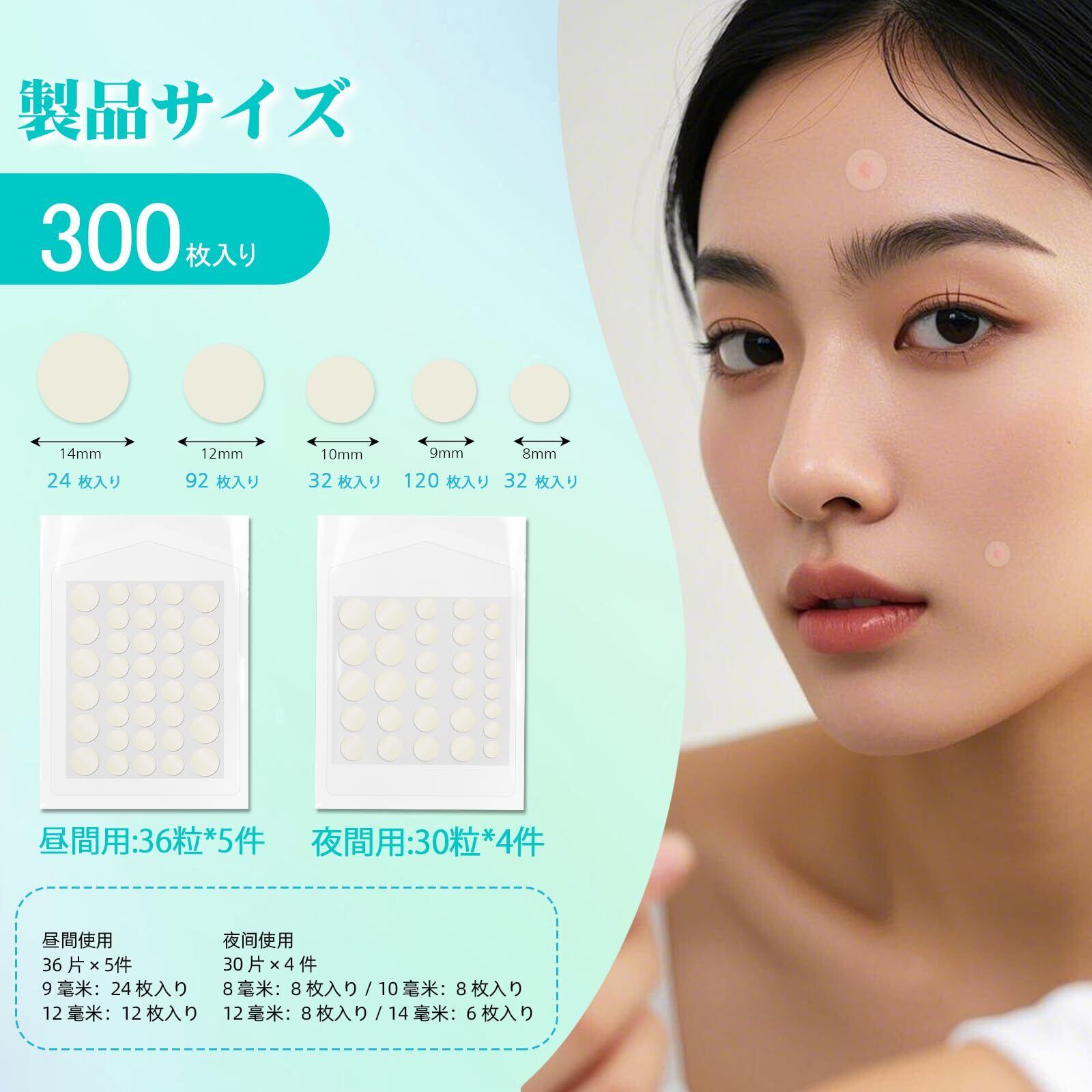 【日夜二重保護】各パッケージには180枚(36*5)のデイタイムパッチと120枚(30*4)のナイトパッチが含まれている。日中に使用すると、パッチは外部物質を効果的に隔離し、その超薄型設計によりほとんど気づかないようになっています。夜に使用すると、私たちのパッチは膿液の吸収を加速させ、皮膚をより速く修復し、枕を汚染することはありません。