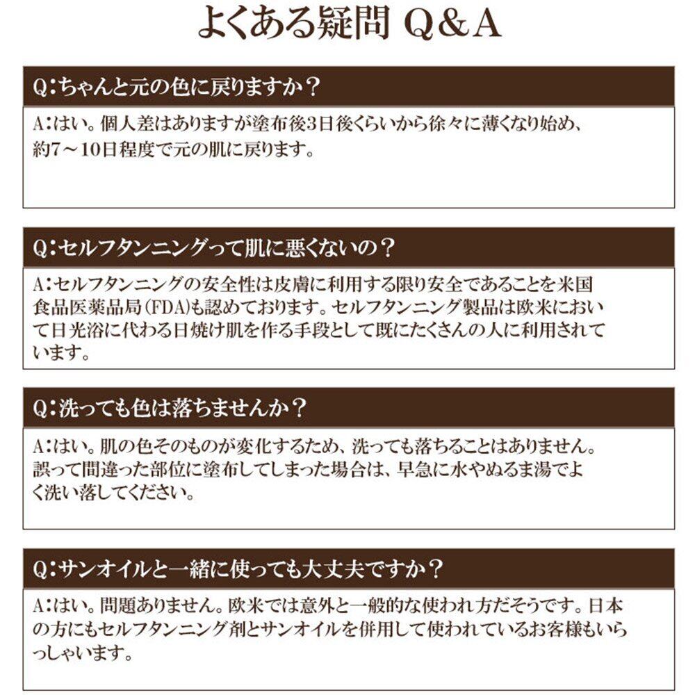 【このような方に】手軽に日焼けしたような小麦肌になりたい方、日焼けしても赤くなったりヒリヒリしてしまう方、日焼けサロンに行くのが面倒な方、暑い中我慢して焼くのが嫌な方、半袖焼けや水着跡など部分日焼けをなくしたい方など、小麦肌を楽しみたい全ての方におすすめです。