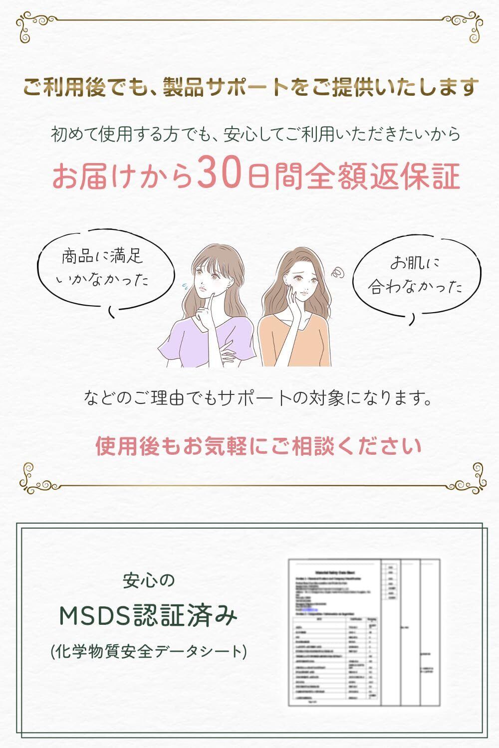 【お気軽にお試しいただけます】使用感が好みに合わない場合や、商品に満足できない場合でも、気軽にお試しいただけます。開封後でも全返対応可能です。マイクロニードルアイパッチを初めて使用する方や、自分の肌に合うか不安な方にもおすすめです。当社の製品は、化粧品GMP(ISO22716)を取得した一流の提携工場で製造され、徹底した品質管理のもと、自信を持ってお届けしております。