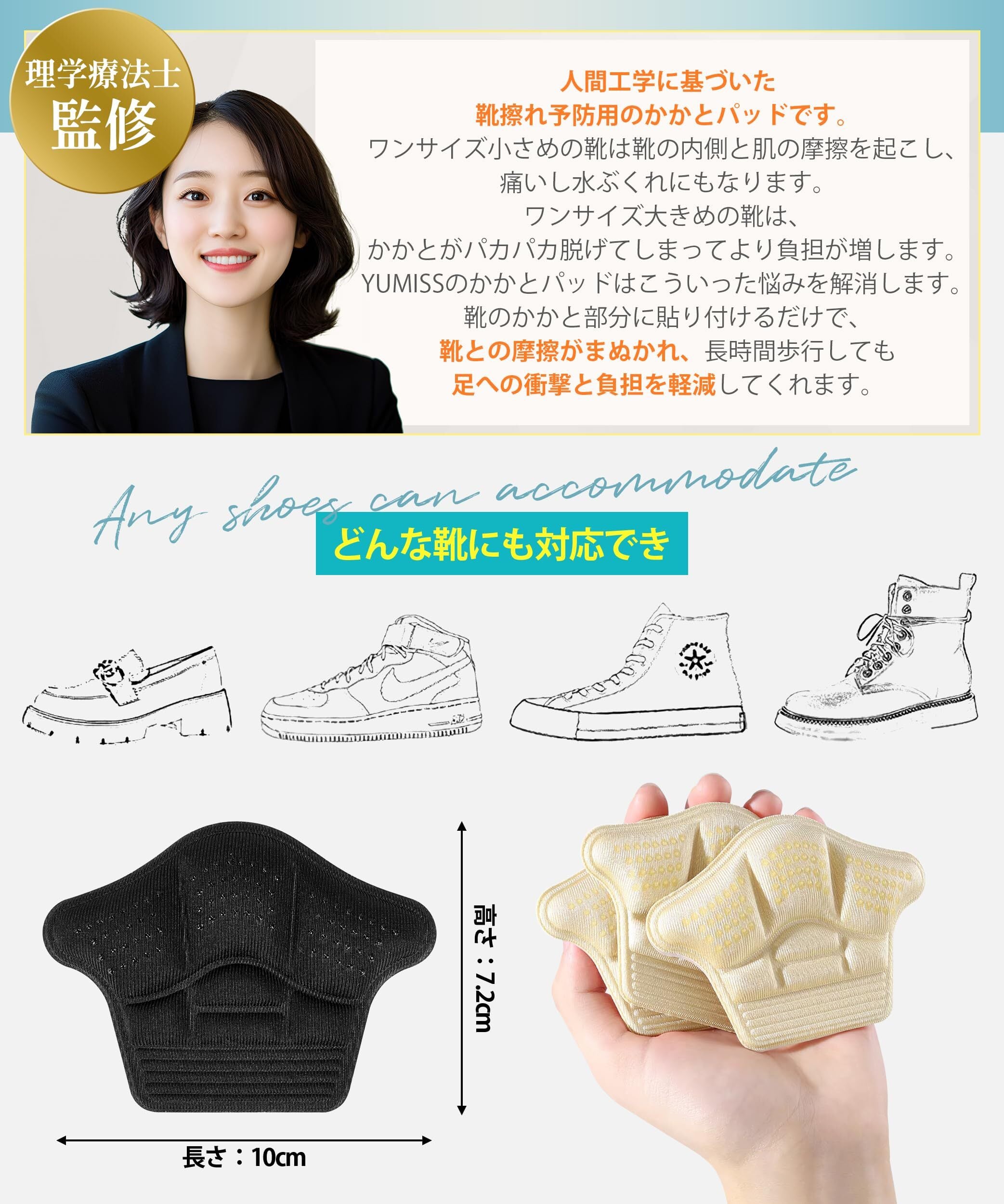 【使用しやすい】コンパクトなかかとパッド、バッグに入れて持ち運びに便利。お出掛け、散歩、旅行、通勤などの時にもかかとを保護します。軽くて快適な履き心地で、長時間貼っても剥がれにくく目立ちません。ブラック、ベージュ、シンプルなカラーでどんな靴に合わせやすい。
