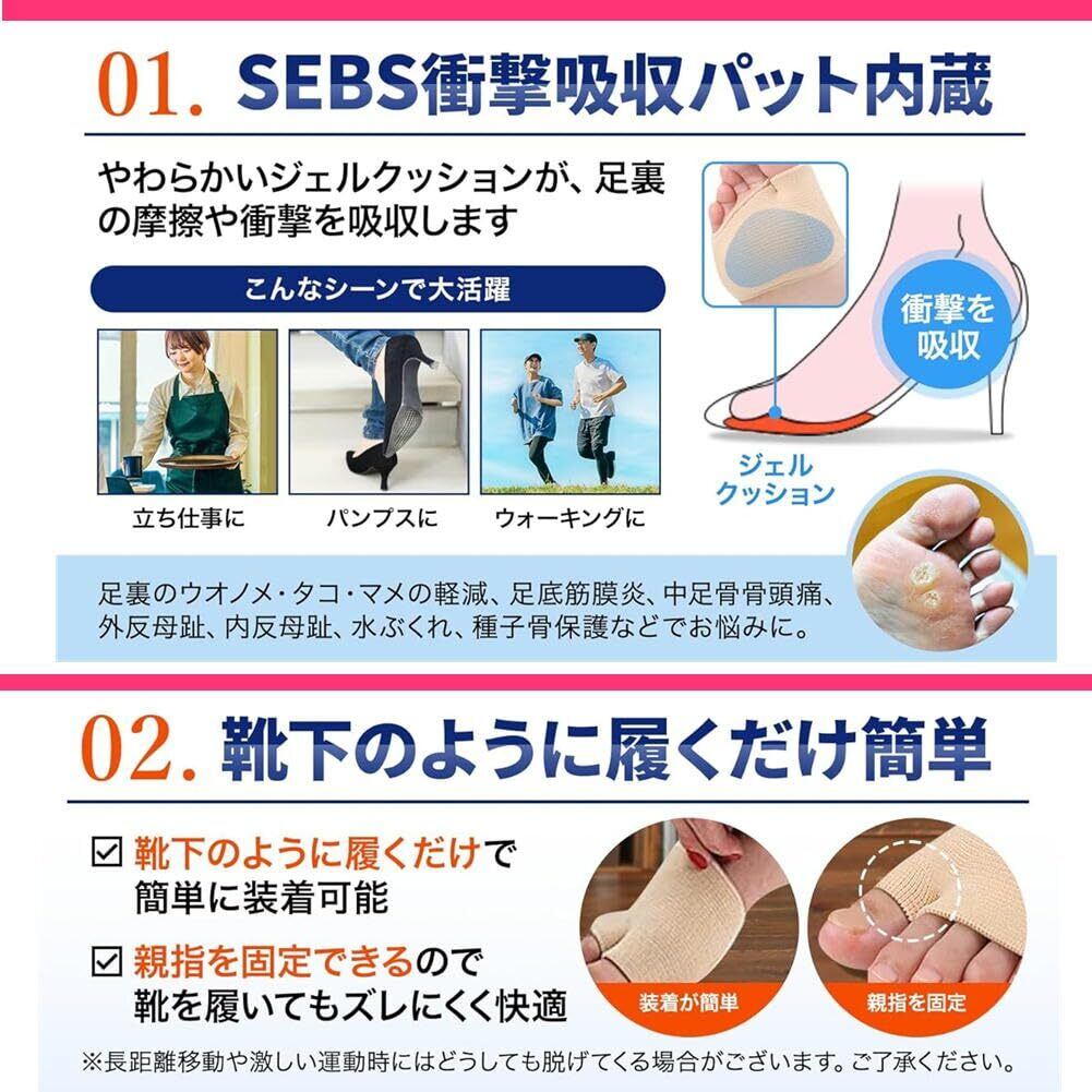 【足裏保護、痛み軽減】足裏保護パッドは足の痛みを緩和します、足先に体重や地面からの衝撃をしっかり吸収し、体重が均等に調整し、つま先の足裏のウオノメやタコの軽減に活用できます。足裏のバランスを良くすることで、膝・腰への負担をサポートします。