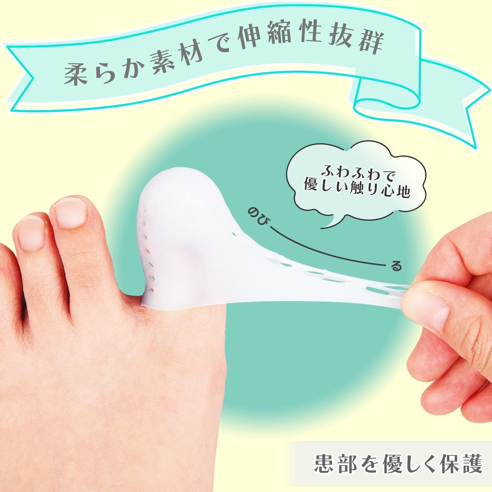 コモライフ やわらか足指保護キャップ 4個組 足指キャップ 足指保護 足指 足爪 つま先 親指 足の指 通気性 左右兼用 カットOK メッシュデザイン 洗える 【セット内容:4個入り】