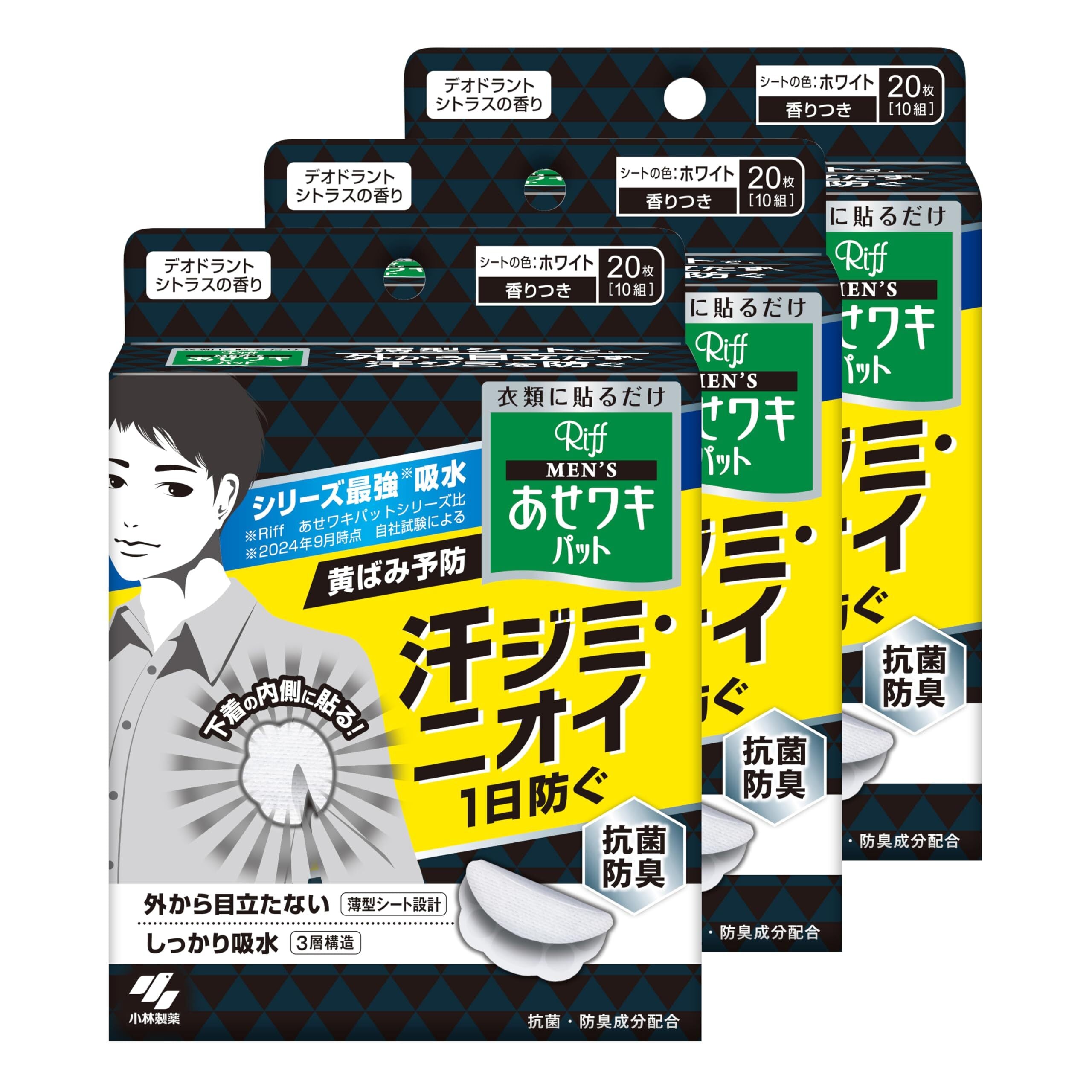 あせワキパット Riff メンズ リフ あせワキパット あせジミ防止・防臭シート 脇汗に ホワイト 単品 20シート (x 3)