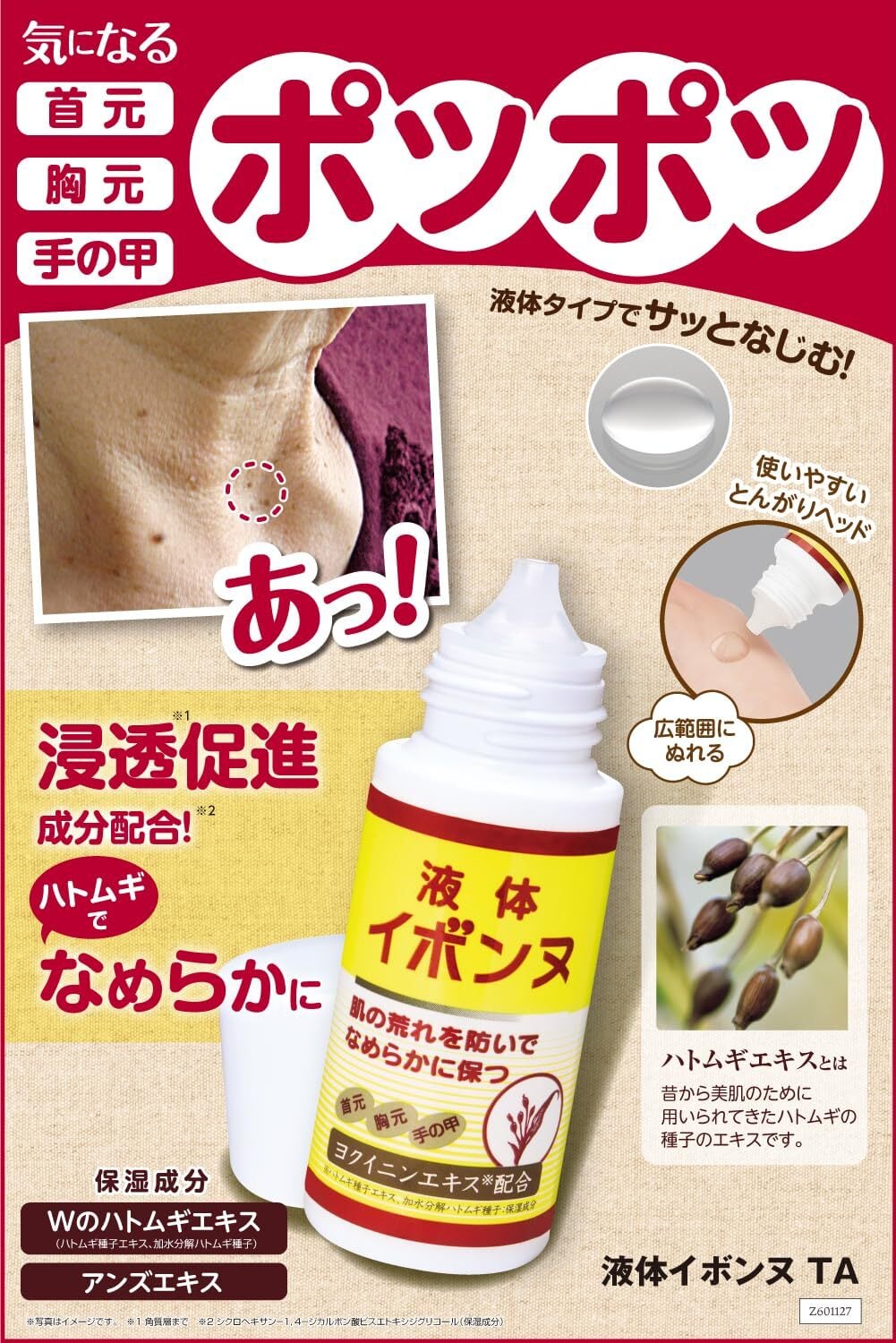 【在庫処分】【 シリーズ累計90万個突破 】 液体イボンヌ TA 40ml /角質ケア イボケア いぼ ポイント美容 スキンケア ローション ハトムギエキス 顔 首元 胸元 角質粒 ぽつぽつ ポツポツ イボンヌ 日本製 かがやくコスメ 公式 Z601127
