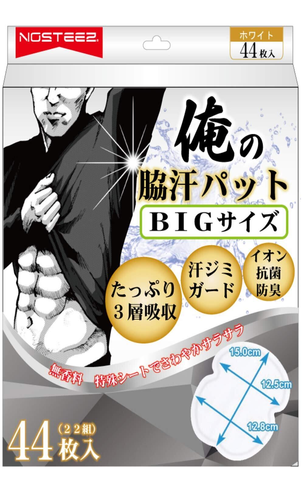 俺の 脇汗パッド わきあせパット あせわきパッド メンズ BIGサイズ 44枚 (白)