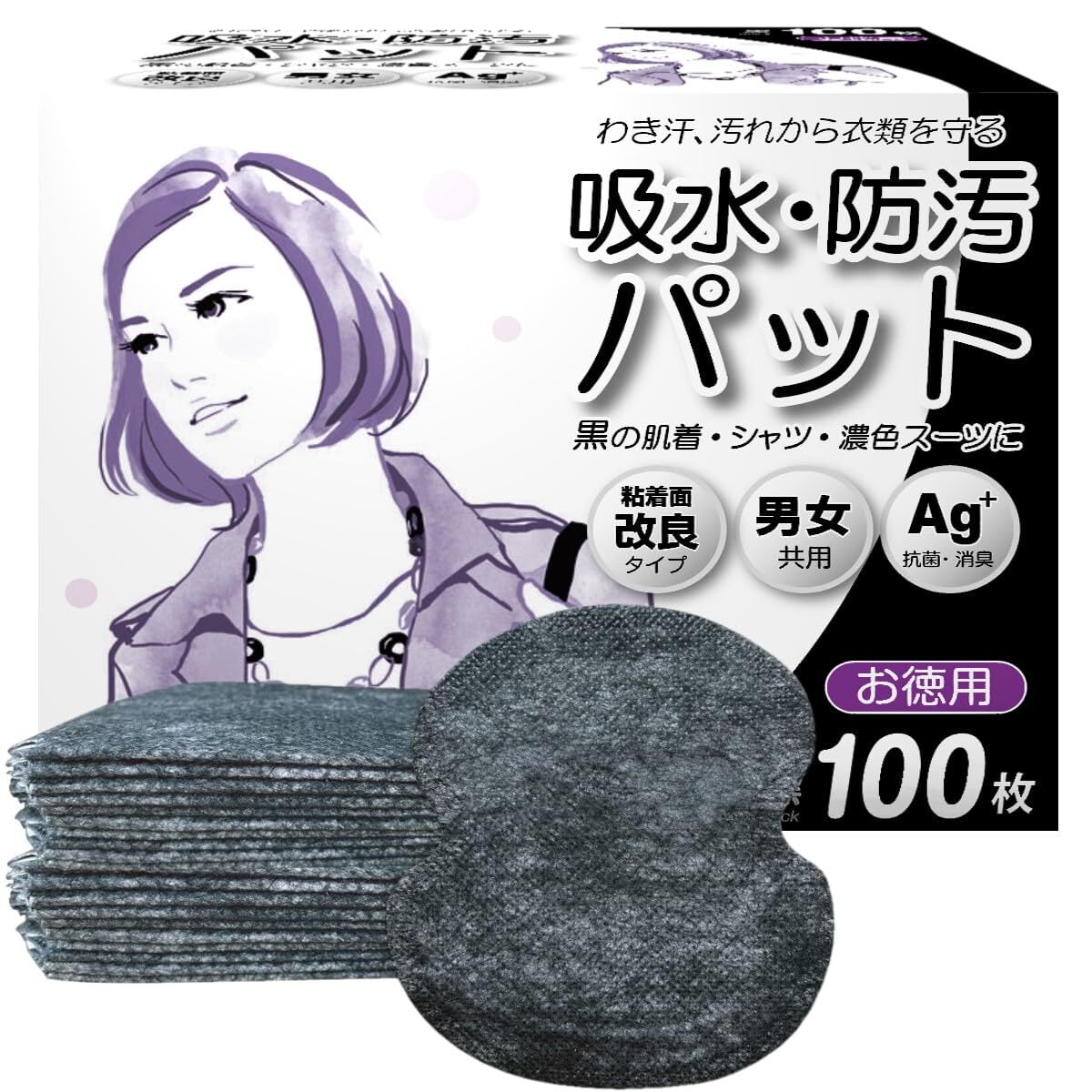 Luna & Stella 脇汗パッド 汗わきパット あせわきパッド 脇汗パッド 黒 汗多め用 粘着面改良 男女兼用 無香料 お徳用 あせジミ防止 ワキ汗 抗菌 消臭 防臭シート 100枚入