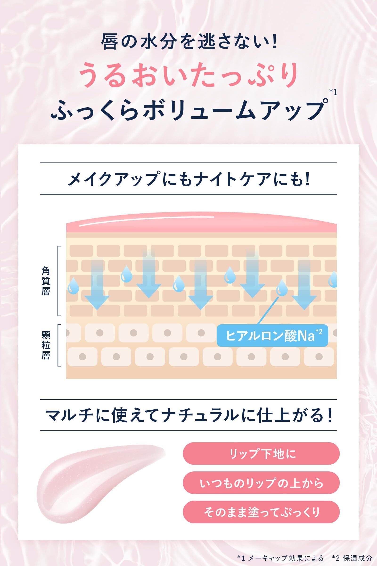 【唇に自然な血色感】メントール*4 によるほどよい清涼感で自然な血色感を与え、ふっくらとしたぷるぷるリップへ