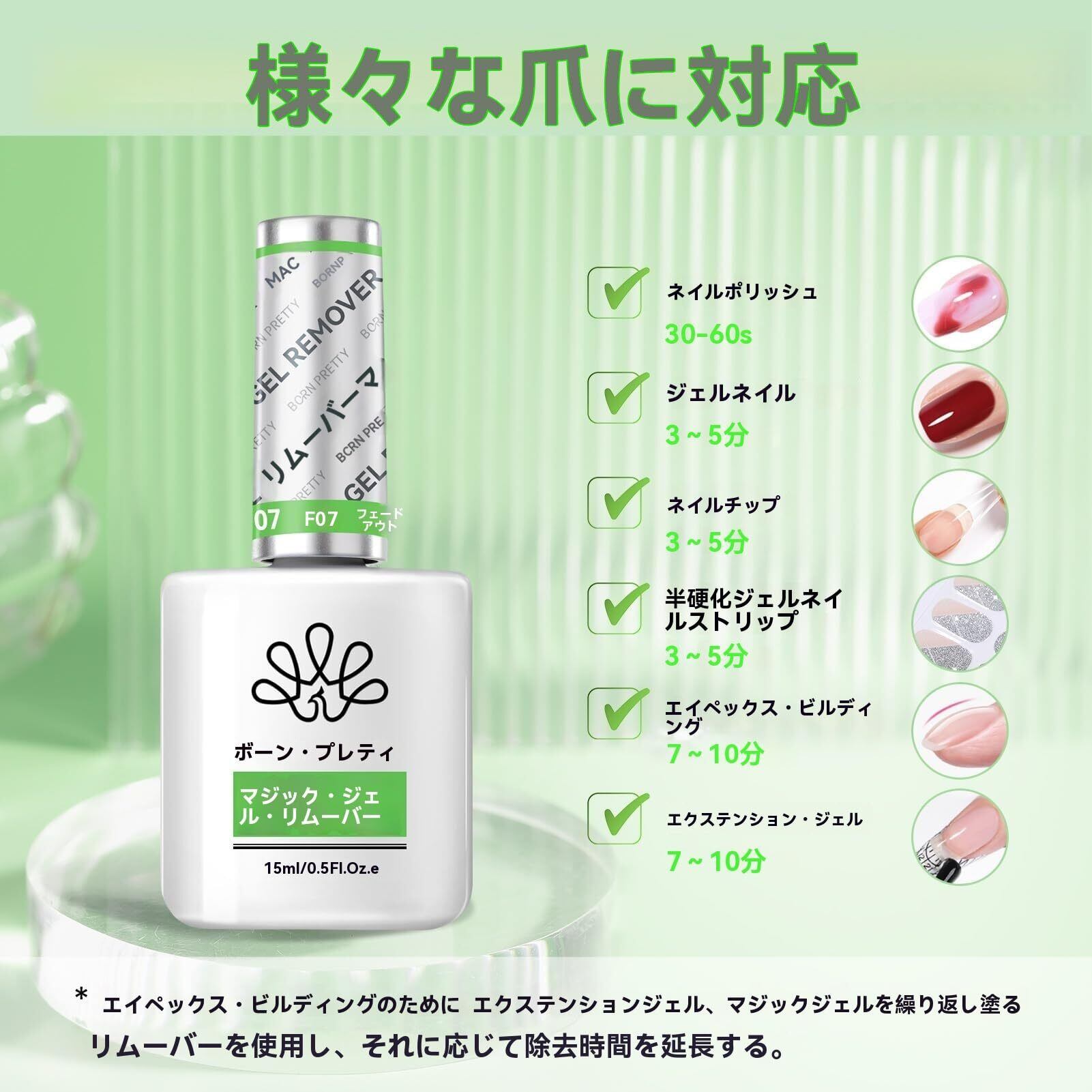 BORN PRETTY ジェルネイル リムーバー 除光液 15ml マジック ジェルネイル オフ ネイルリムーバー 簡単・迅速 ピールオフジェル セルフネイル ジェルネイルオフ gel nail remover