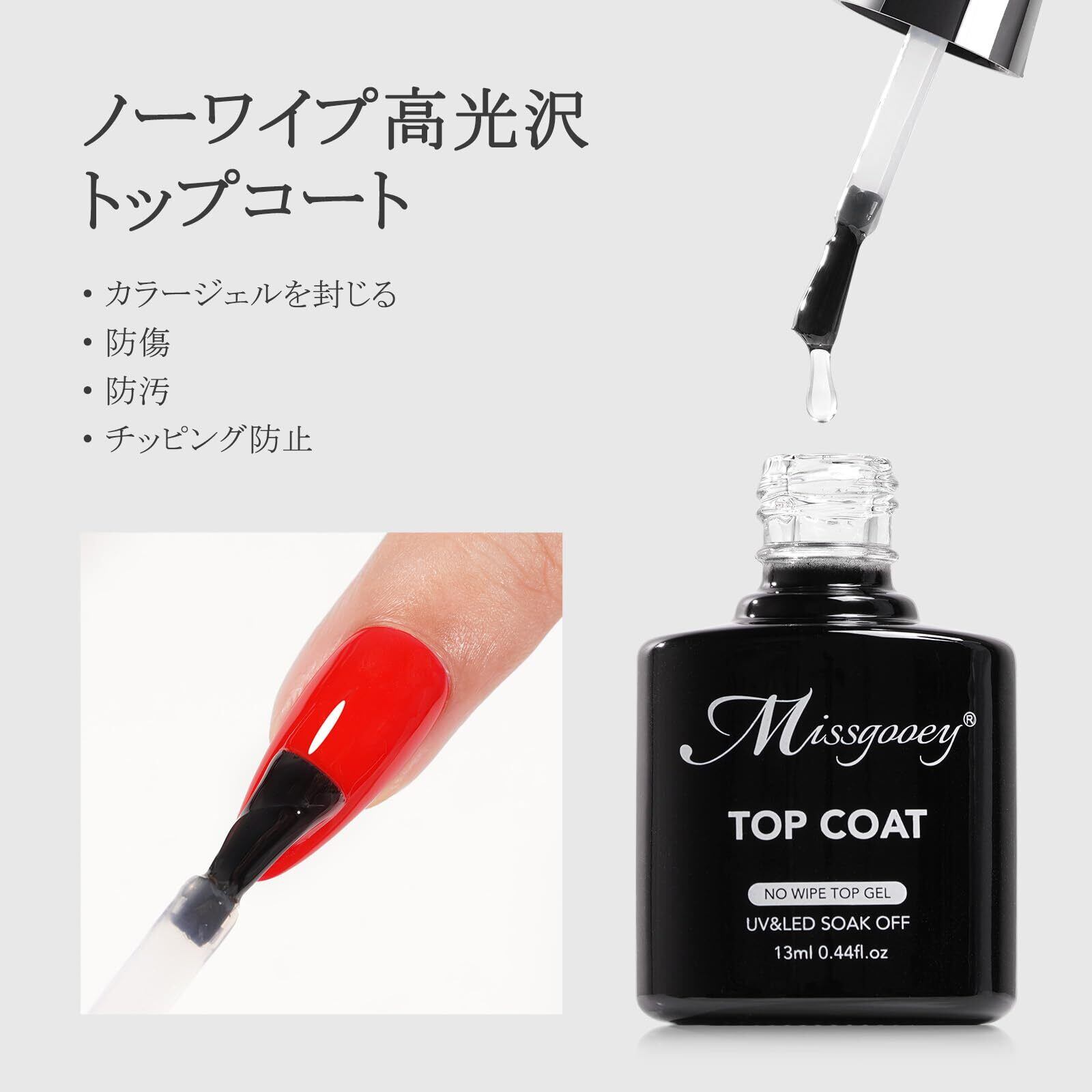 Missgooey ジェルネイル トップコート ノンワイプトップジェル UV/LED対応 初心者&プロ用 拭き取り不要 最上級の艶 長持ち 13ml