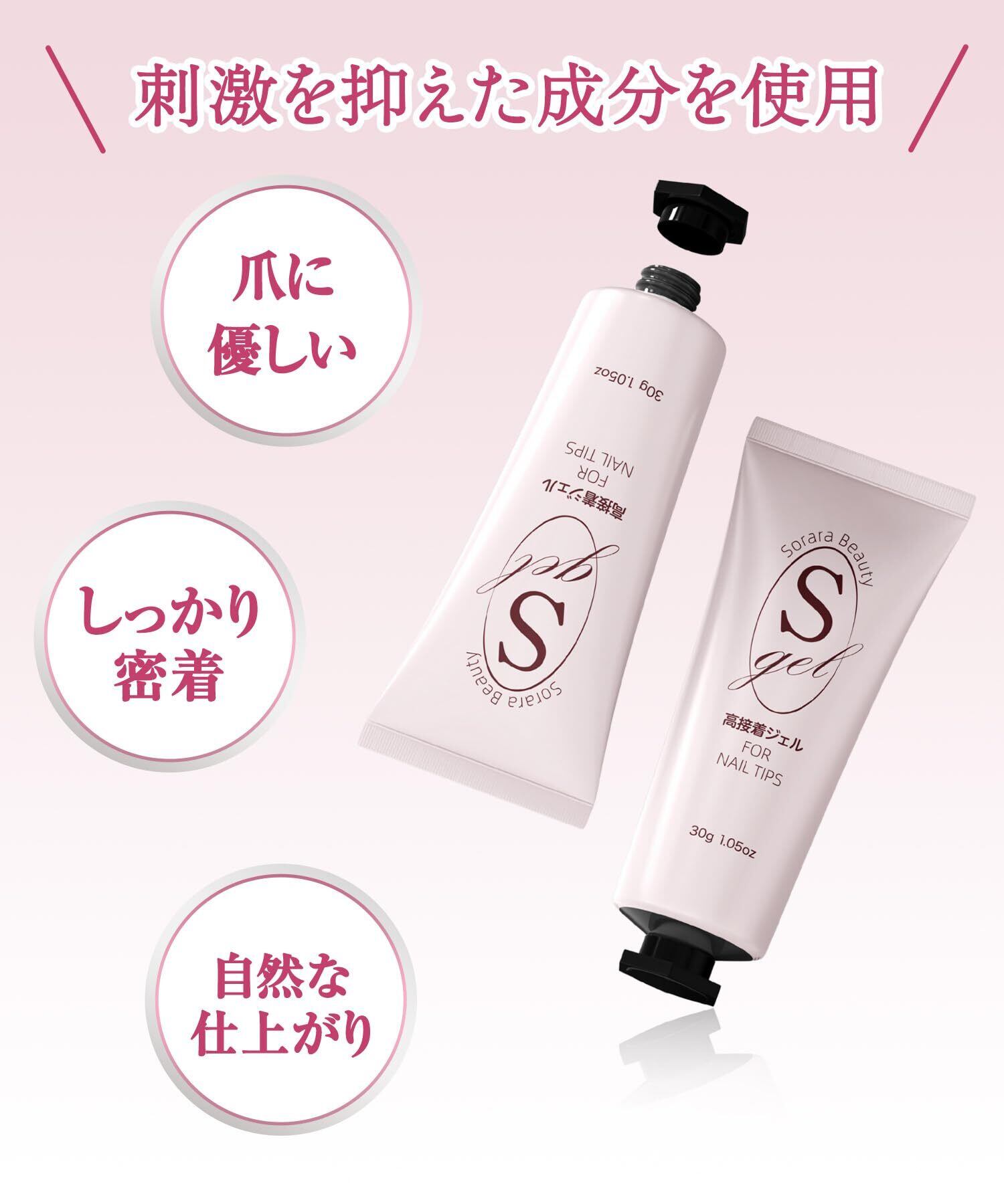 Sorara Beautyネイルチップ専用接着ジェル 大容量30g|UV/LED対応 ソリッドタイプ 高密着 超強力接着 手で押さえ不要|ネイルパーツ・3Dアートにも対応 (訳あり品:軽微なキズ, 透明)