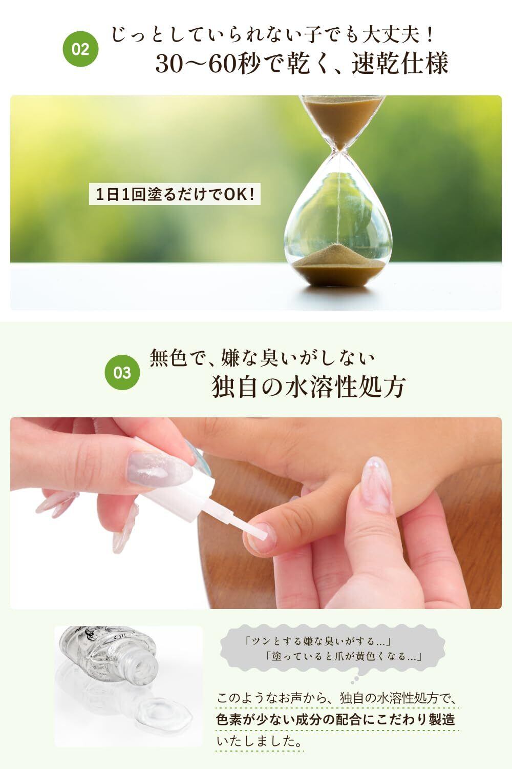 【30〜60秒以内に乾く速乾仕様】じっとしている事が苦手なお子様にもお使いいただけるように、速乾仕様で1日1回塗るだけで簡単なマニキュアとなっております。塗り方についてもプロのネイリストの方にご協力をいただき、動画で詳しく解説をさせていただいているため安心してお使いいただけます。