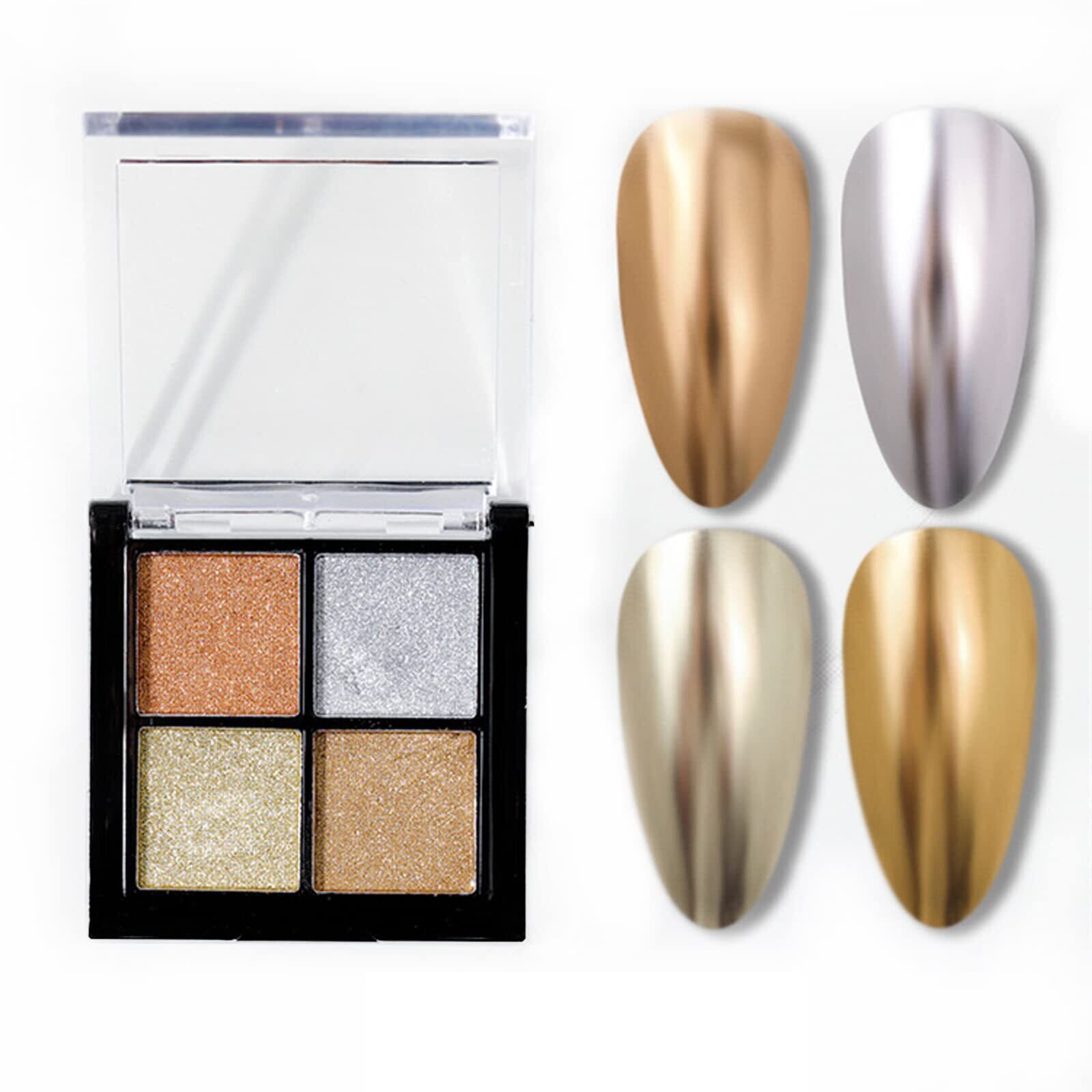 ミラーパウダー パレット 固形 ネイルパウダー 4色セット ミラーネイル パウダー ゴールド シルバー ネイルアート ジェルネイル レジン メタリックパウダー チップ付き (B)