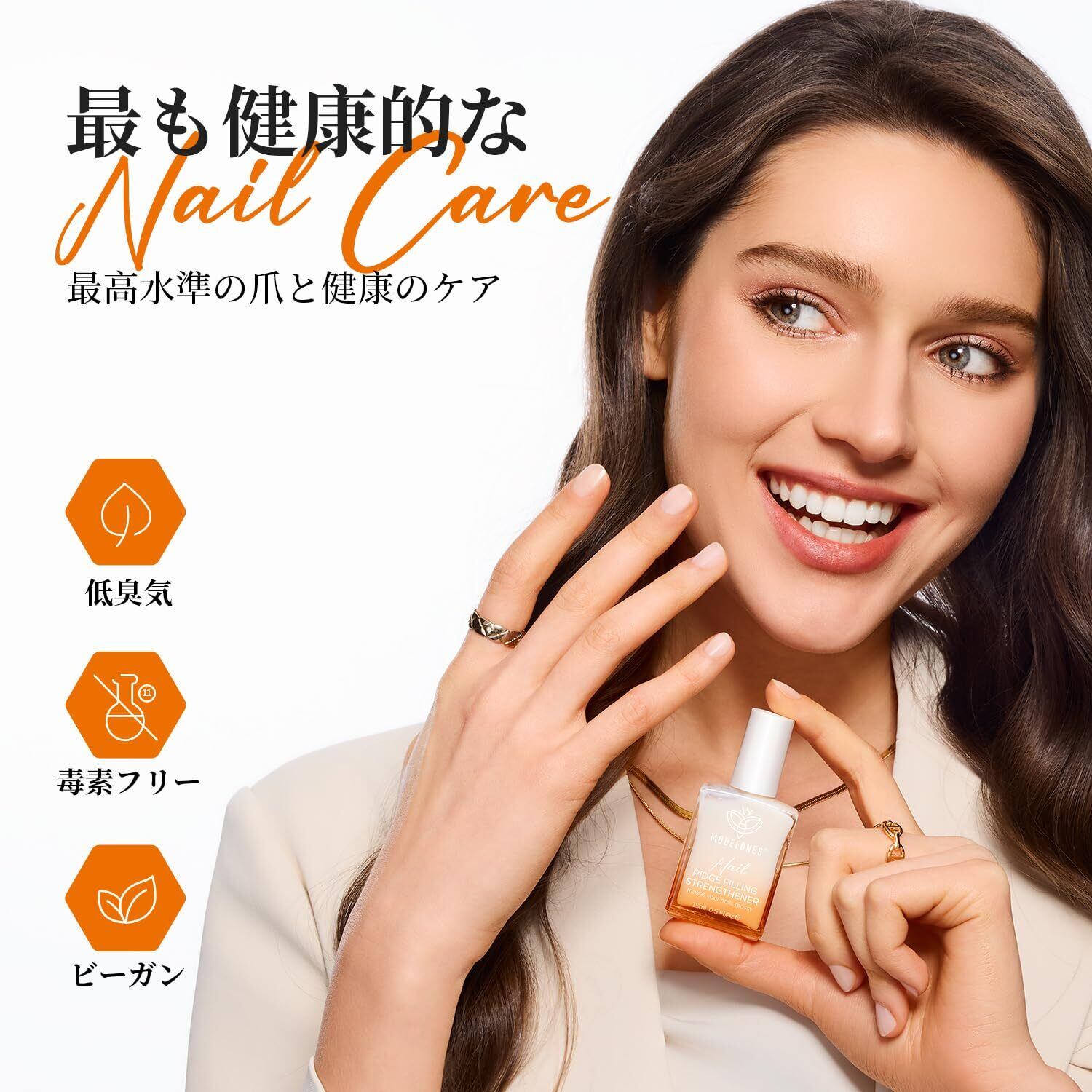 8in1マルチ機能:Modelonesの8in1ネイルストレングスナーは、爪の強化、リペア、ベースコート、リッジフィラーとして、さまざまな用途に対応する多機能ネイルケアアイテムです。弱くて傷んだ爪をしっかりサポートし、日常的に爪を保護しながら美しい仕上がりに導きます。