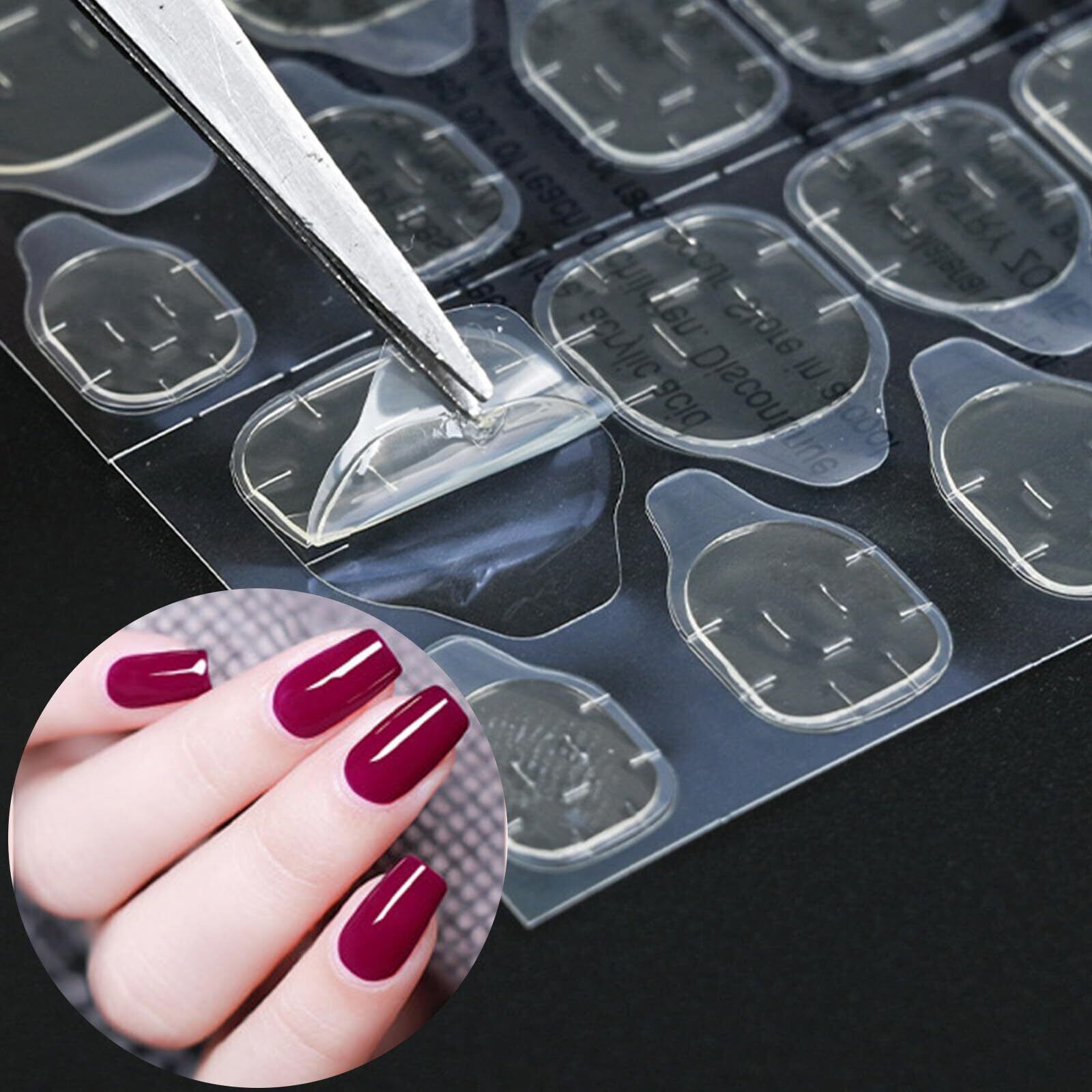 【接着剤不要の手軽さ!】特殊なテープを使用しているため、面倒な接着剤は必要ありません。必要なときにサッと貼るだけで、簡単に美しいつけ爪が完成します。準備や後片付けが不要なので、忙しいあなたにぴったりのアイテムです。