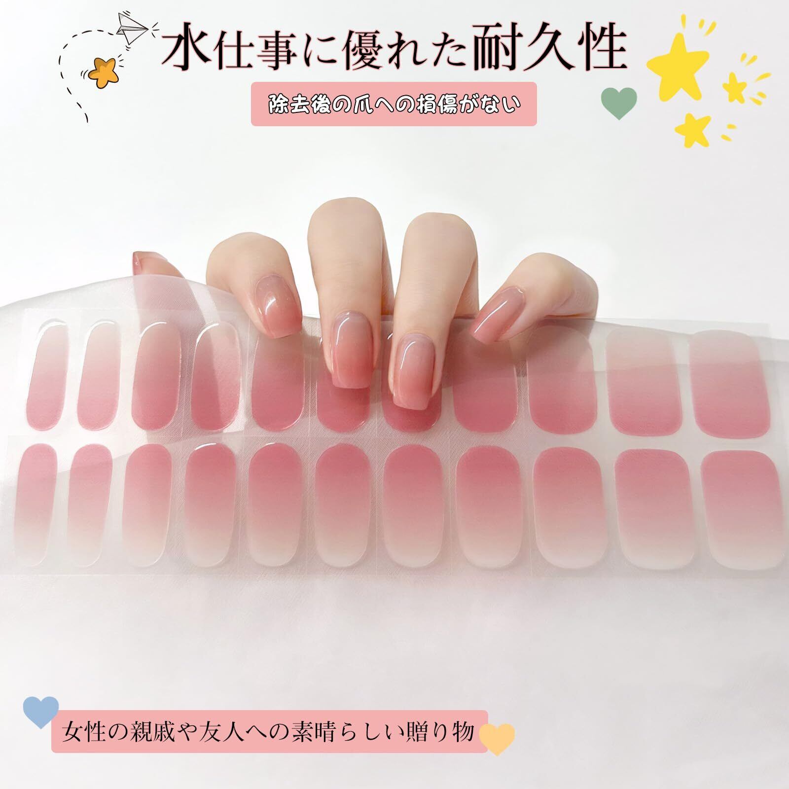 Chisafly ジェルネイルシール 硬化タイプ ネイルシール ジェルネイル 硬化 22枚セット 薄い ピンク ぼかし 可愛い ぷっくり セルフ スティック付き 剥がし 長持ち 無地 ライト マニキュア