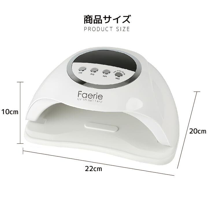 【320Wの高出力で驚異の速硬化!】Faerieのジェルネイルライトは、320Wのパワーを持ち、72個のLEDが搭載されています。この強力な出力で、短時間でムラなくジェルを確実に硬化させることができます。自宅でのネイル施術がスピーディーかつ簡単に行えます。