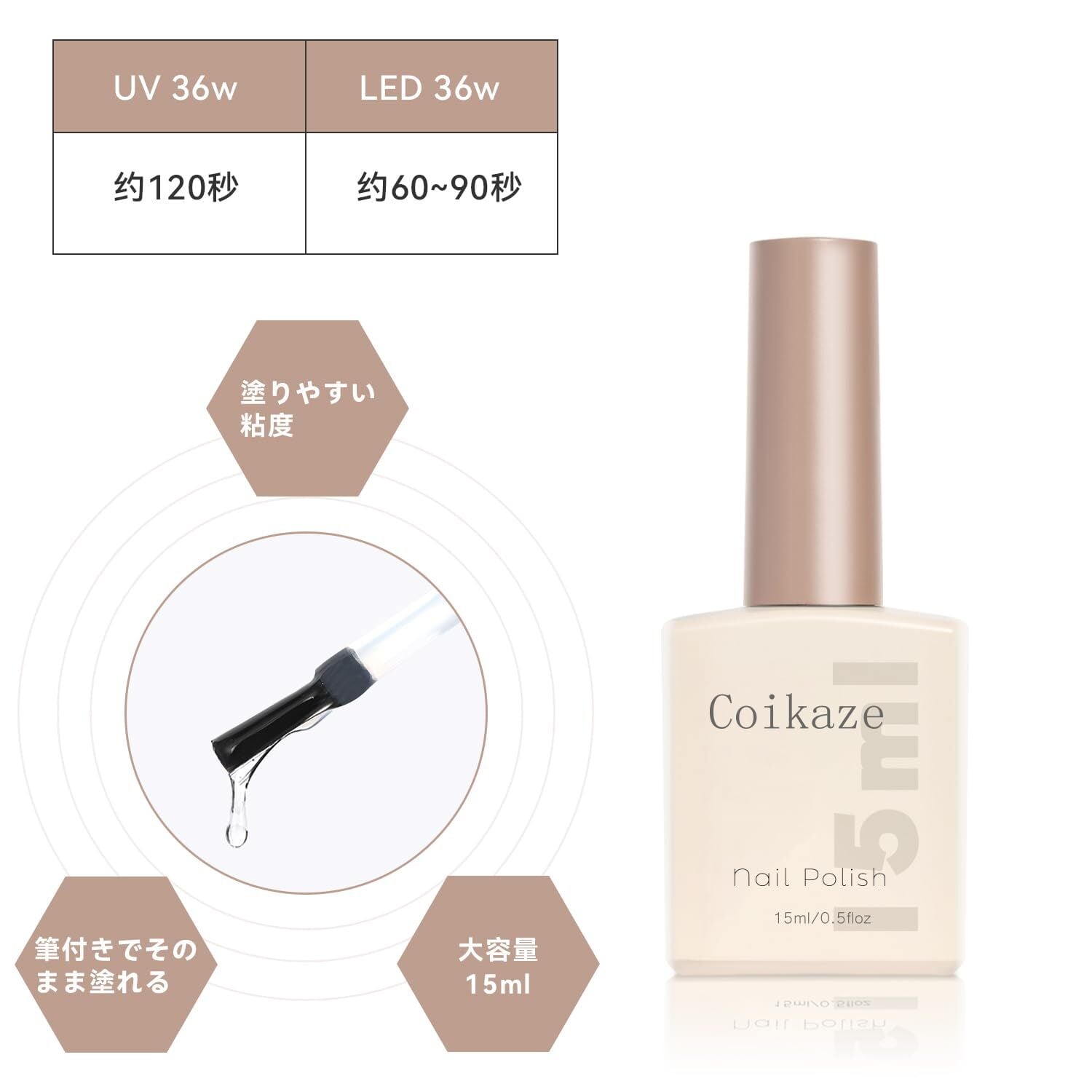 【UV/LEDライト対応】UV/LEDライトで硬化必要。UVライトでもLEDライトでも硬化できますので、お手持ちのライトですぐ使えます。硬化時間目安:36W UVライト:60~120秒 / 36W LEDライト:30~60秒(※上記は目安であり、お使いのライトのパワーや塗布の量により異なります。)