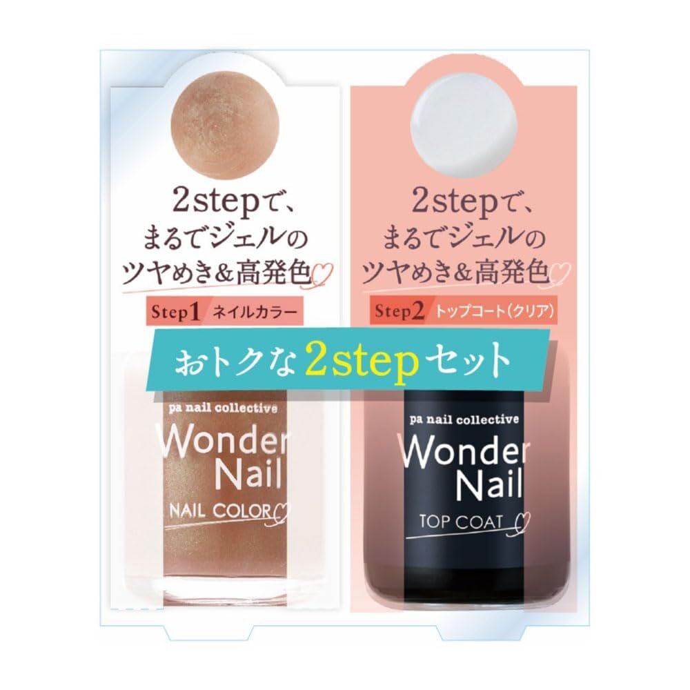 ベースコート不要で自爪へ使用できるワンダーカラーと、太陽光に反応してキレイが長持ちする専用ワンダートップコート(WN-01)のセットです。 paワンダートップコートとセットでご使用いただくことで、丈夫で艶やかなネイルに仕上がり、 自爪に負担をかけずにマニキュアでは得られなかった欠け・割れに強いキレイなネイルが長持ちします。