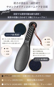 【簡単 2 ステップで頑固な角質も簡単除去】#80 の粗い面で硬くなった角質を取り除き、#180 の 細かい面で足全体を整えます。かかとの状態に合わせて3種類の 面を使い分けて誰でもサロンクオリティの仕上がりに。同シリーズの高保湿かかとクリー ム併用で、より「すべすべもちもちかかと」へ導きます。