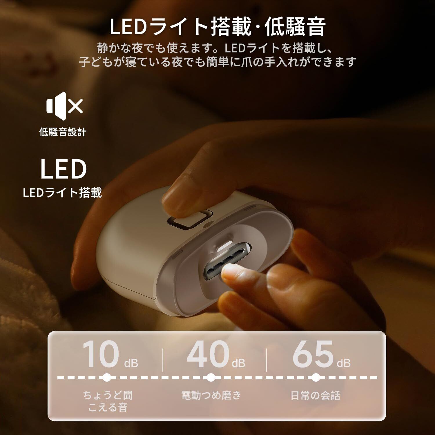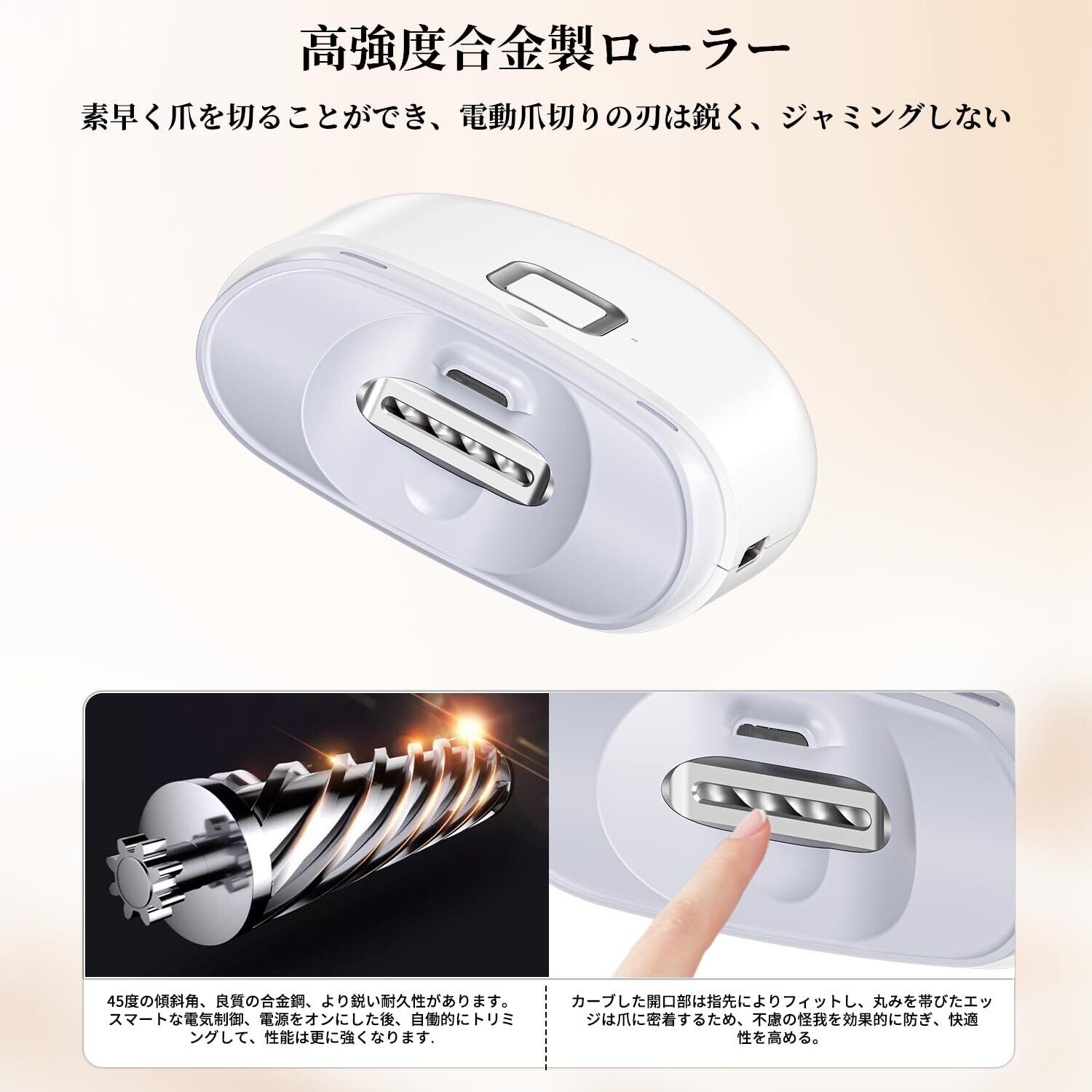 【2025新改良】電動爪切り 爪切り 電動 2段階スピード 電動つめきり 電動爪削り ネイルケア 照明LED Type-C充電式 爪傷防止 巻き爪 厚い爪 爪ケア 用 低騒音 超軽量 簡単操作 安全 ワンボタン操作 赤ちゃん 子供/大人/者と家族全員が使用 (ホワイト)