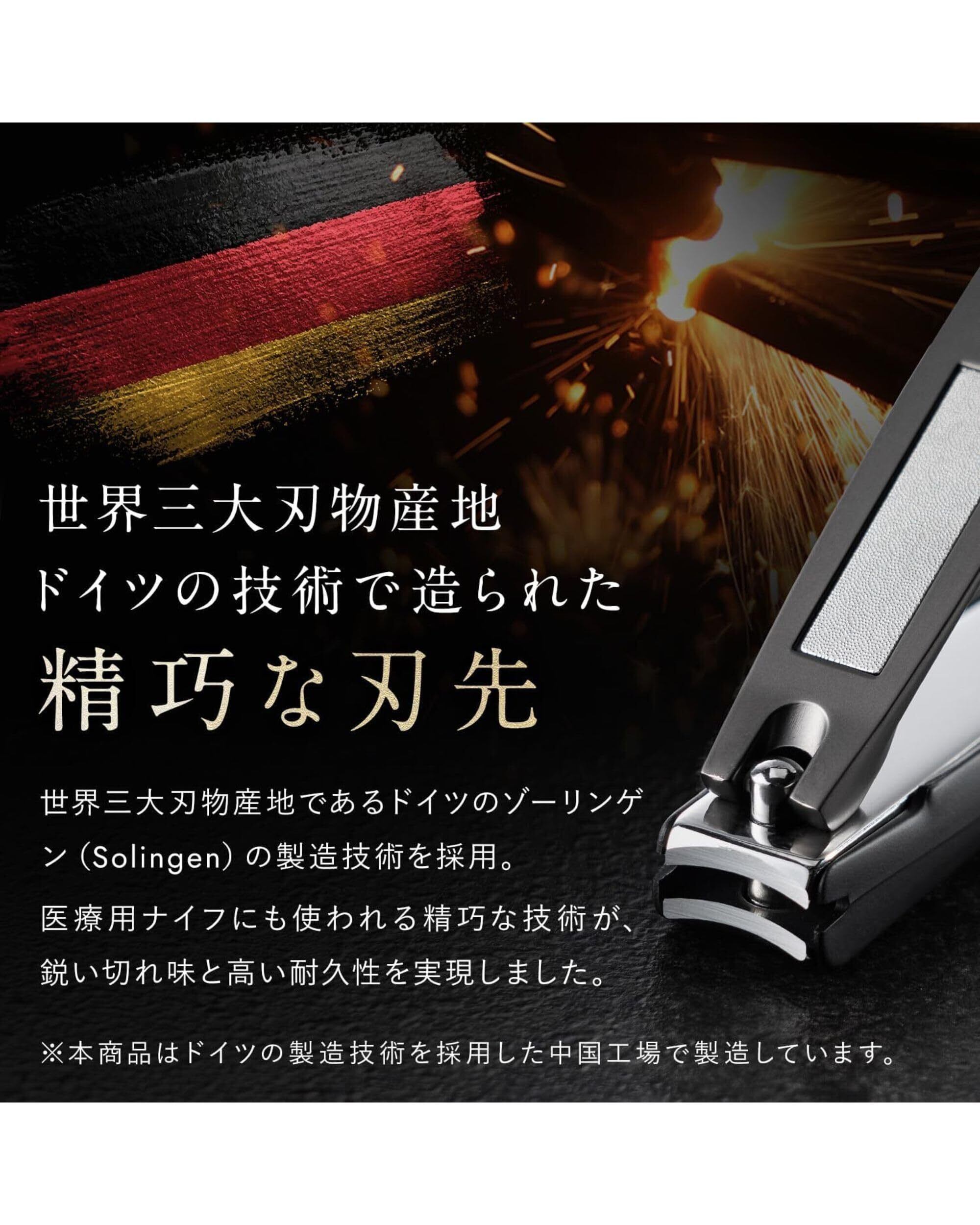 【世界三大刃物産地ゾーリンゲンの設計技術を採用】 ドイツの製法技術と厳選資材を活用し、日本とドイツの職人技術を融合。20年以上の研究を経て開発された至極の爪切りです。※生産国:中国。燕三条や関孫六、貝印と並ぶ高品質な仕上がり。
