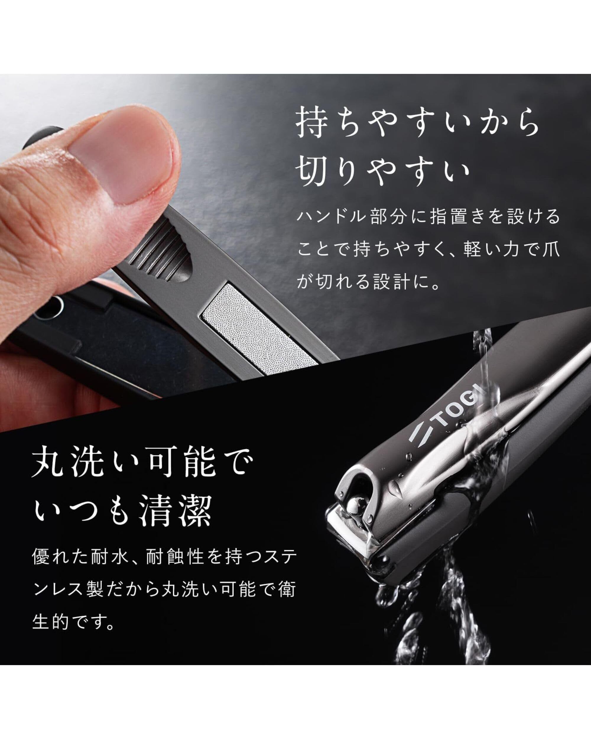 【特価商品】正規品 TOGI 爪切り 至極の鋭い切れ味 高級【軽い力でスパッと切れる】カーブ刃 つめきり ギフト ガンメタブラック 420J2採用