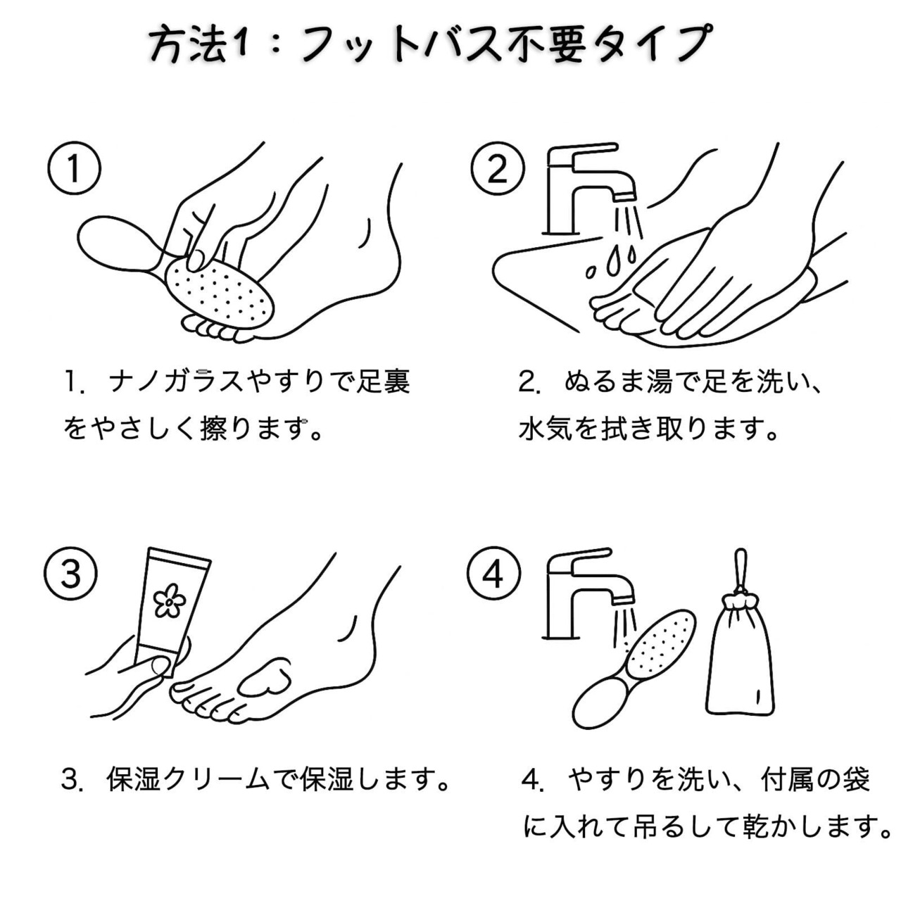 【⑥ 水洗いOK&安心の日本語説明書付き】 ナノガラスかかとやすりは水洗い可能で清潔に保てます。初めての方でもわかりやすい日本語説明書が付属しているので安心です。