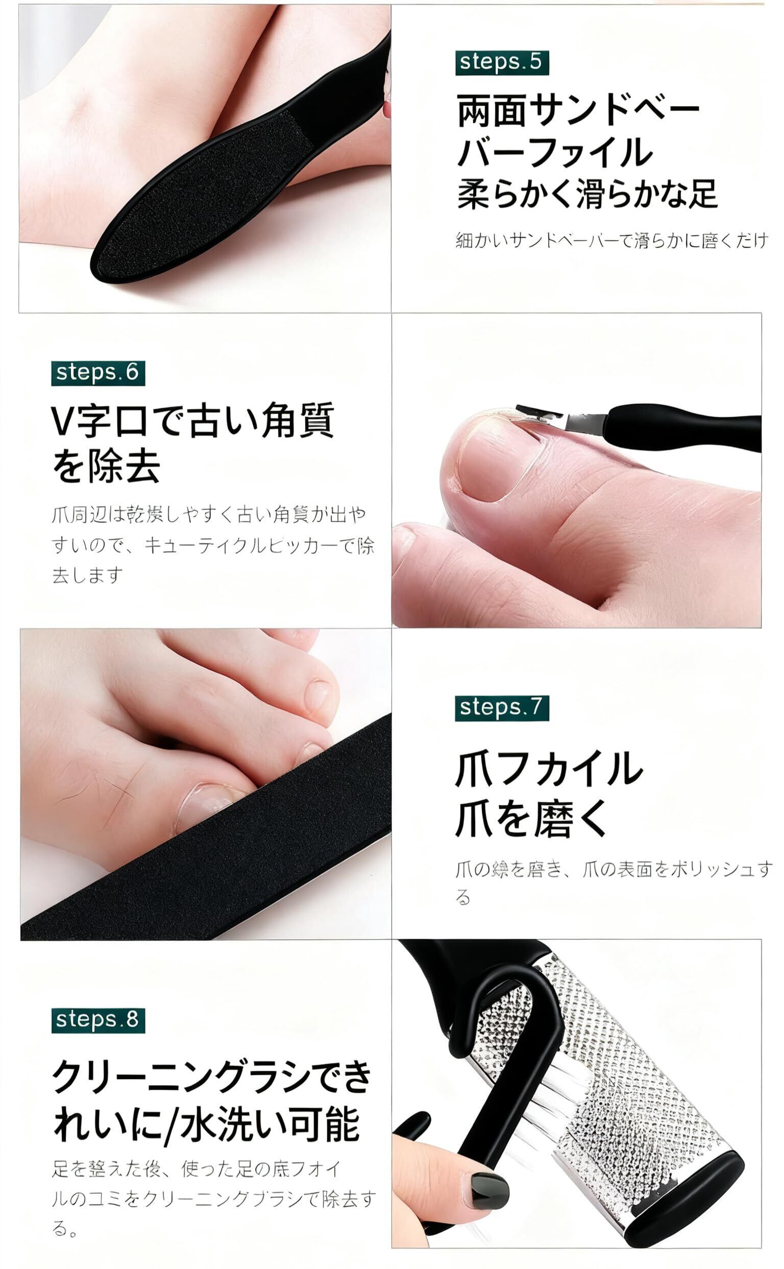 【全ての足の悩みに対応!】足の角質や硬い皮膚にお困りの方へ、必要なツールが全て揃ったこのセットは非常におすすめです。つるつるで健康的な足元を手に入れるチャンスです!