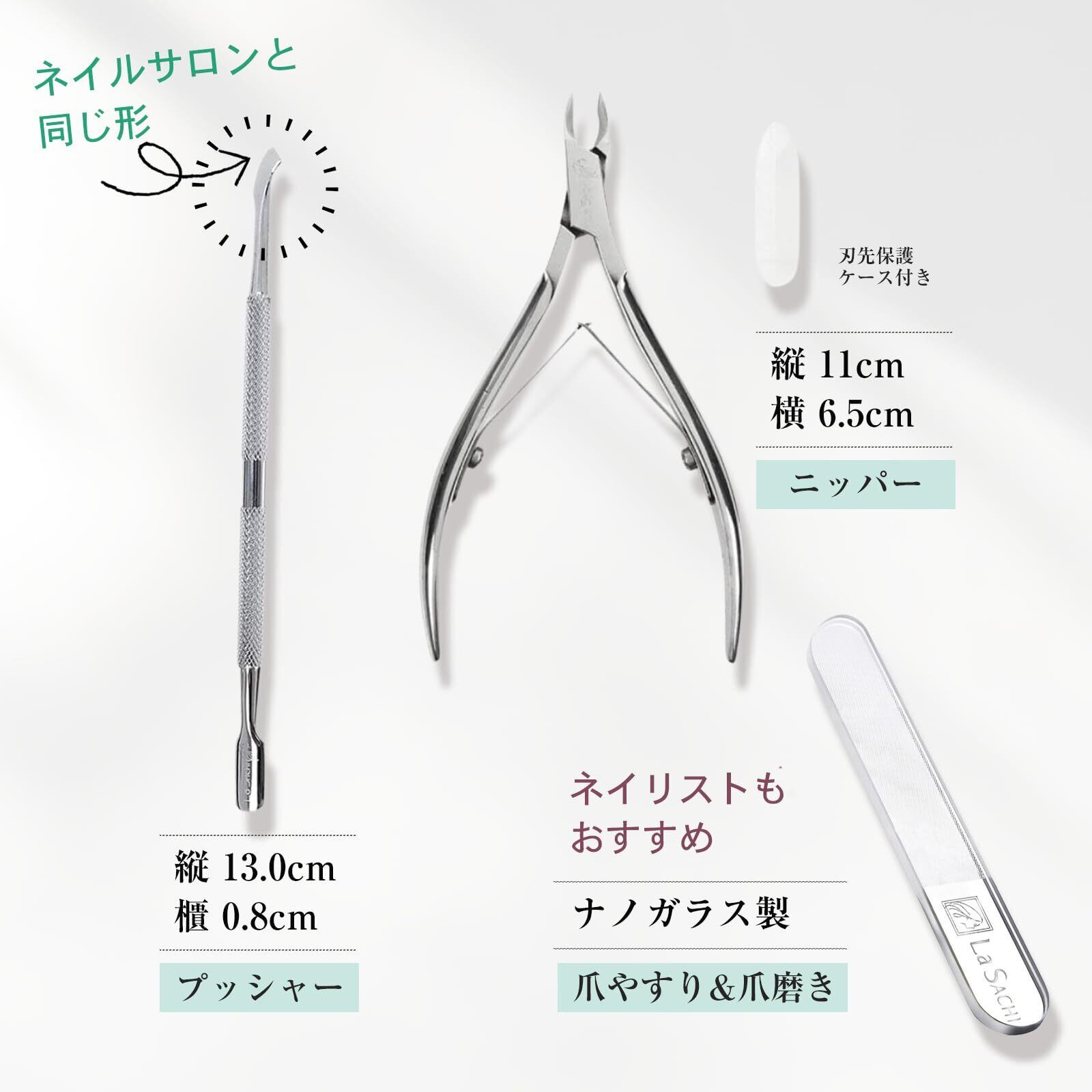 La SACHI キューティクル ニッパー 甘皮 処理 セット プッシャー 爪やすり 手指 ケア セルフ ジェル ネイル 甘皮切り マニキュア ささくれ