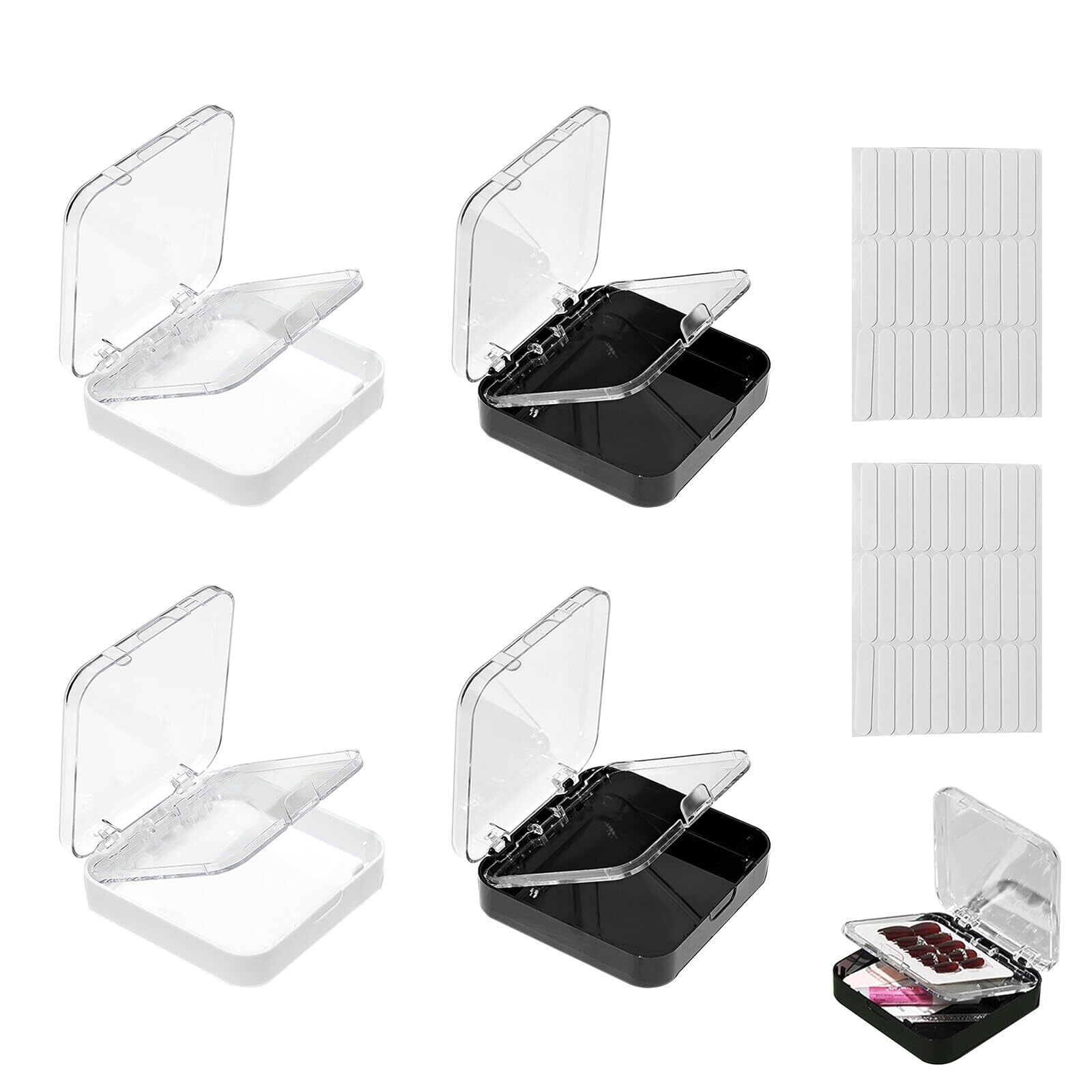ネイルチップケース ネイルチップ 収納 4個セット 両面テープ60枚付き 持ち運び 小さい プラスチック 透明 つけ爪/人工ネイル 保管用 ネイルパーツ収納ボックス