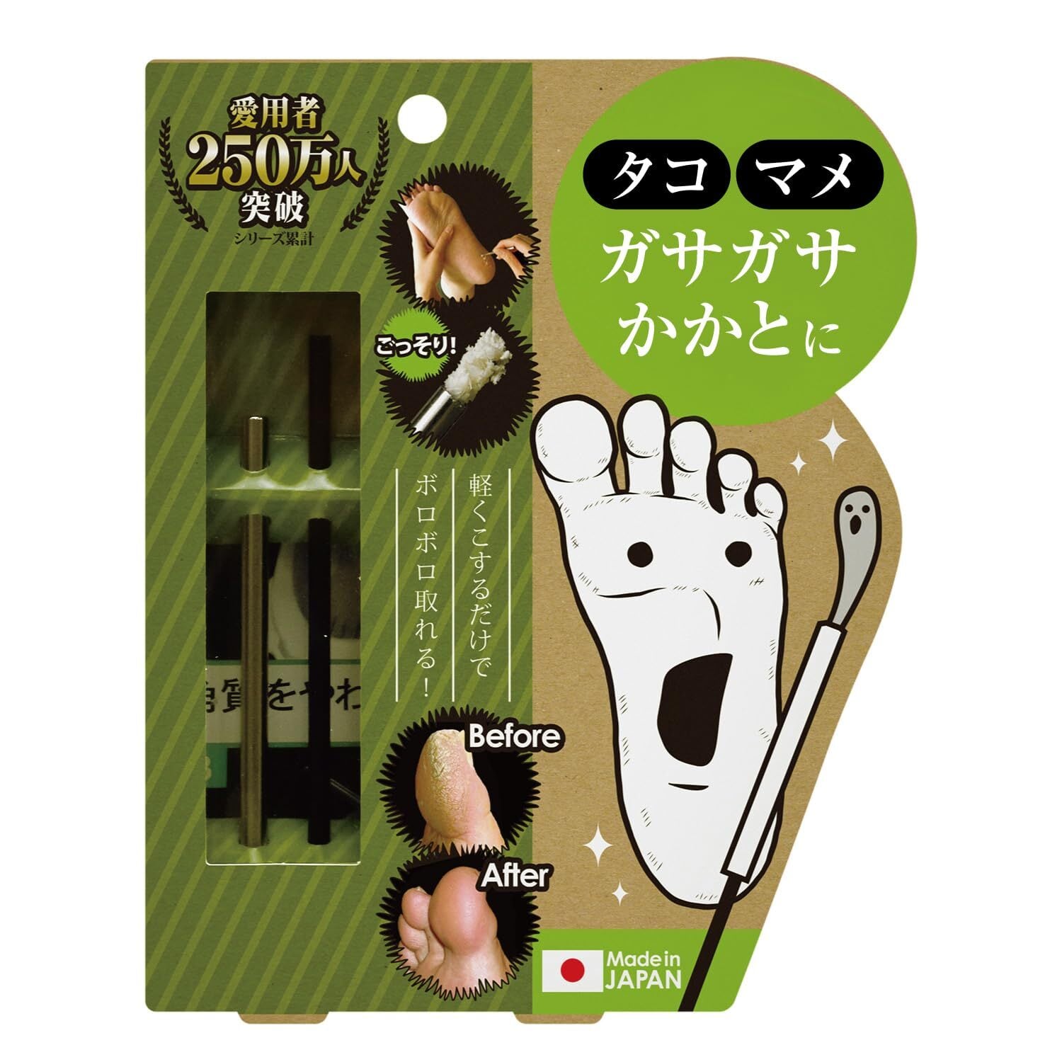 ・本品は両端が刃物ですので手を切らないように注意してください。 ・本品は皮膚に対して鋭い角度に傾けて使わず、必ず常に90度の角度でご使用ください。・本品をグルグルまわしたり、強く押し付けたりしないでください。適度に力を入れたりまわしたりすると皮膚を切って傷つける可能性があります。 ・削れ具合には個人差があります。角質が取れない場合には無理に強くこすり過ぎないようにしてください。 ・すり傷、切り傷などのケガをしている部分、あざになっている部分に本品を使用しないでください。 ・自分で見ることができない部分のご使用はおやめください。 ・使用中に炎症、腫れなどの異常があらわれたときには、直ちに使用を中止し、皮膚科医師等にご相談ください。 ・目的以外の使用用途ではご使用にならないでください。 ・削れ具合は少しずつ弱まります。 ・使用後は本品の使用部位と肌に触れたすべての部分をきれいに洗い流し、十分乾燥させてください。 ・本製品を落とした場合、刃を損傷することがあります。そのような場合は新しい製品をご使用ください。 ・お子様のご使用は避けてください。 ・幼児の手の届かないところに保管してください。 ・角質が筒内に溜まりすぎると押し出せなくなる場合がありますので、付属の黒い棒でこまめに角質を押し出してください。 ・糖尿病の方、エイズの方、化学療法を受けている方は本品使用について専門の医師にご相談ください。