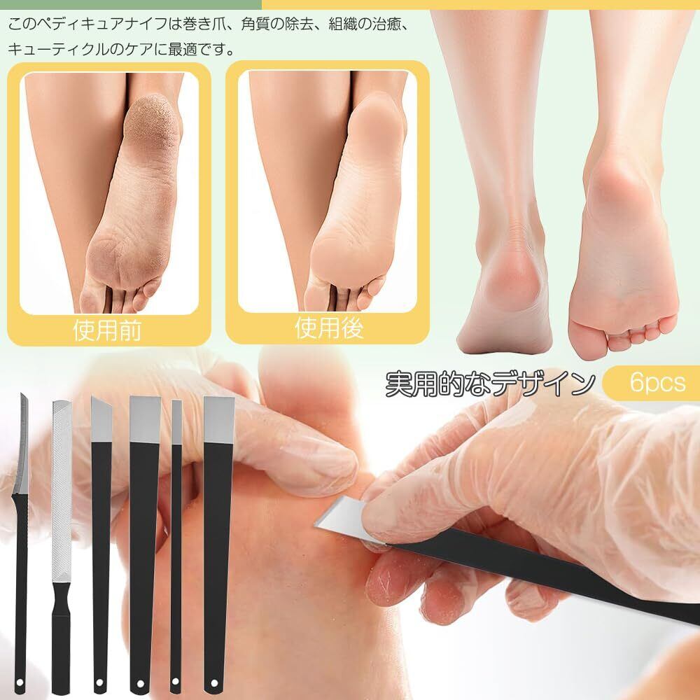 ペディキュアナイフ 6点セット ペディキュアキット 足切りナイフ 様々なスタイル 刃ナイフセット ネイルケア 足爪のお手入れ 多機能ペディキュアナイフ 甘皮切り/巻き爪/厚くて硬い爪/角質の角質 実用的なデザイン 携帯便利 男女兼用 収納袋付き