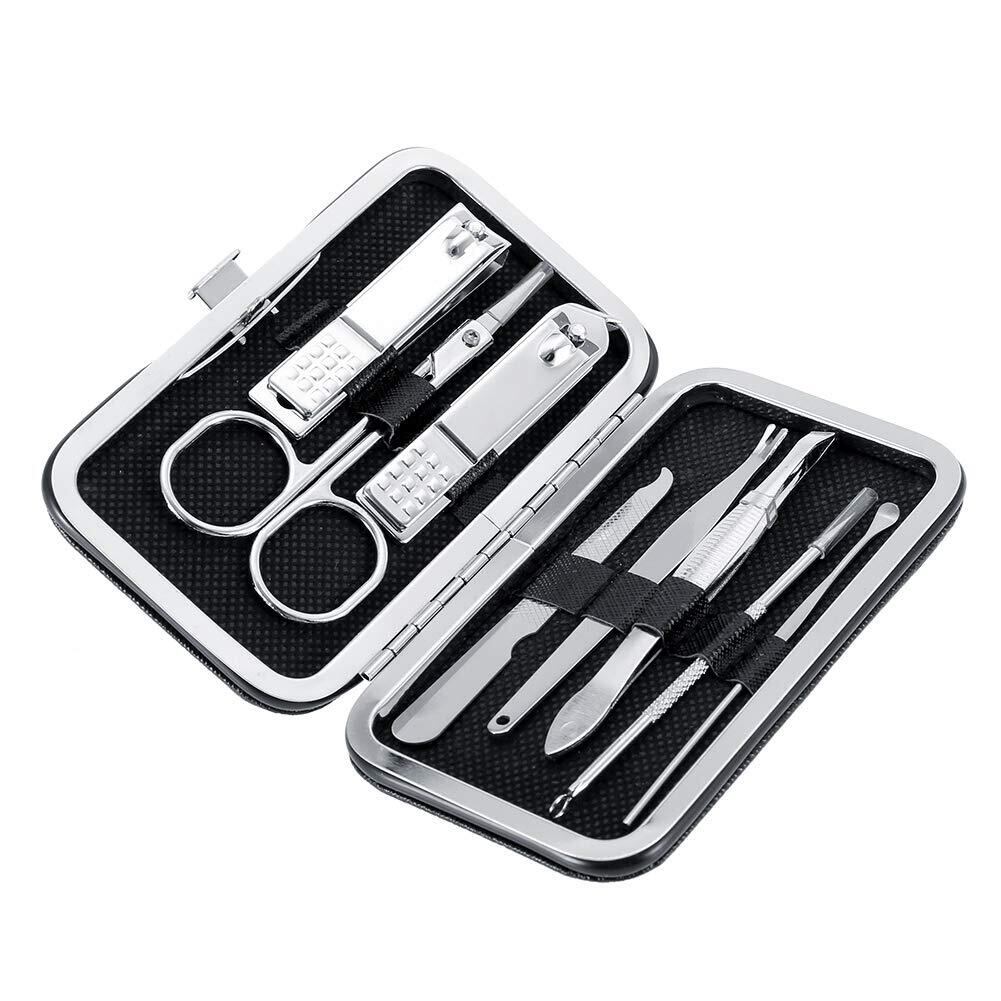 ネイルクリップセット エチケットセット 身だしなみセット 爪切り ハサミ ピンセット グルーミングキット 携帯便利 収納ケース付き ステンレス製 8本セット ブラック