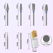 【6個ネイルビットキット】このネイルドリルビットには、6種類の中粒タングステンカーバイドカッタービットと1本のネイルブラシが含まれており、異なるネイルエリアでの研磨ニーズに対応します。ネイルベッドの準備、キューティクルエリアの清掃、爪の形作りと短縮、表面の滑らかな除去、ネイルホールのドリルなどにご使用いただけます。