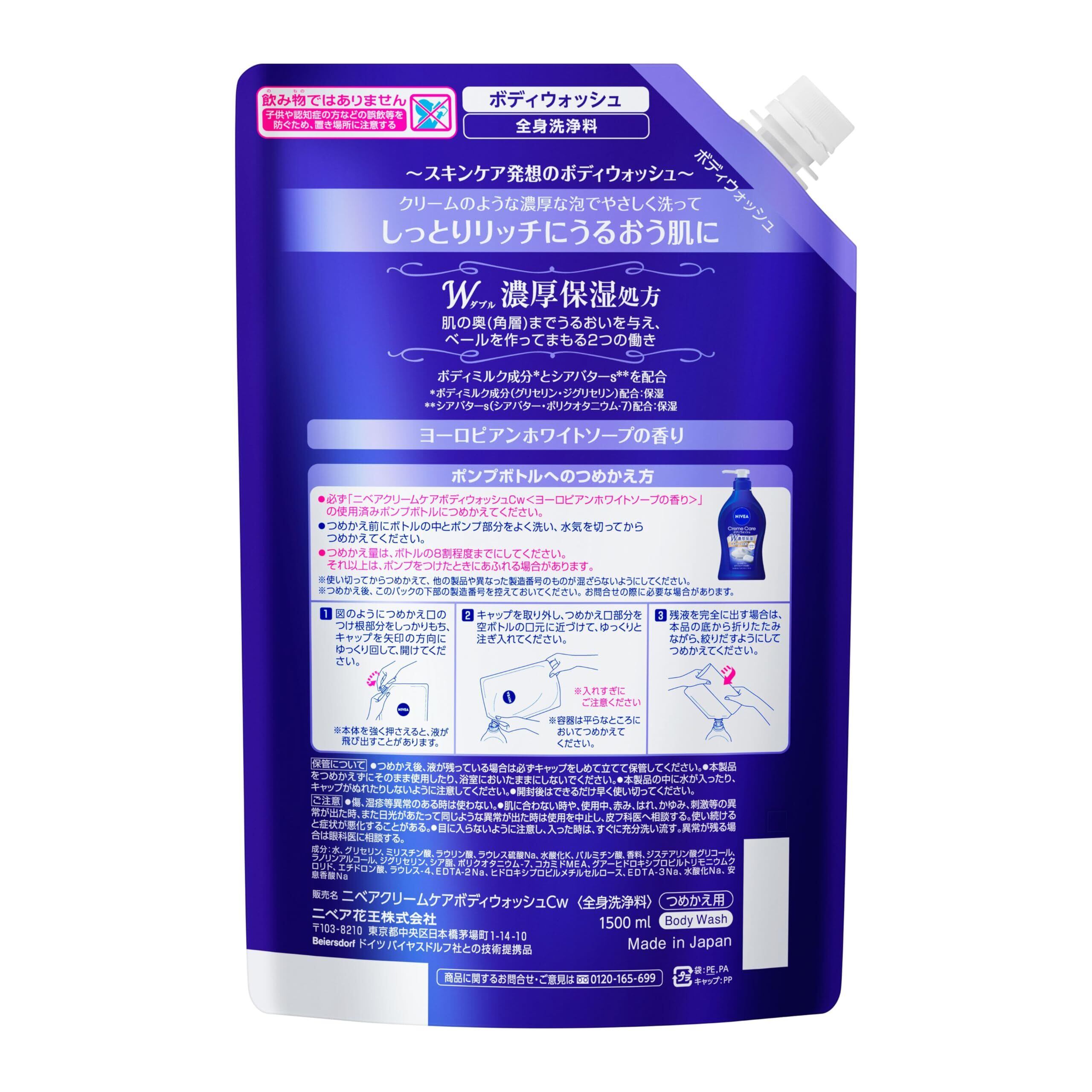 ニベア クリームケア ボディウォッシュ ヨーロピアンホワイトソープ 詰替 1500ml ボディソープ 全身洗浄料 大容量 スパウト 【限定】