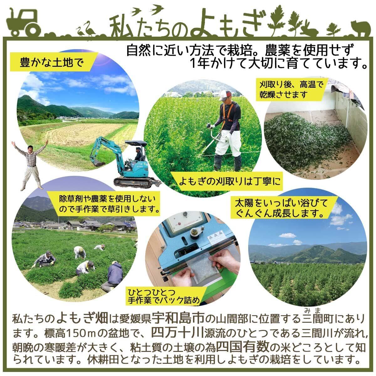 【心と体をほぐすよもぎの恵み!】「ゆいの里 よもぎ湯入浴パック」は、愛媛県産の自家栽培よもぎを100%使用した贅沢な入浴剤です。よもぎの持つ自然の力が、お風呂の中で優しく溶け込み、身体を温めながらリラックス効果をもたらします。心地よい香りが広がる中、日々の疲れを癒し、心と体をリフレッシュする特別な時間をお楽しみいただけます。