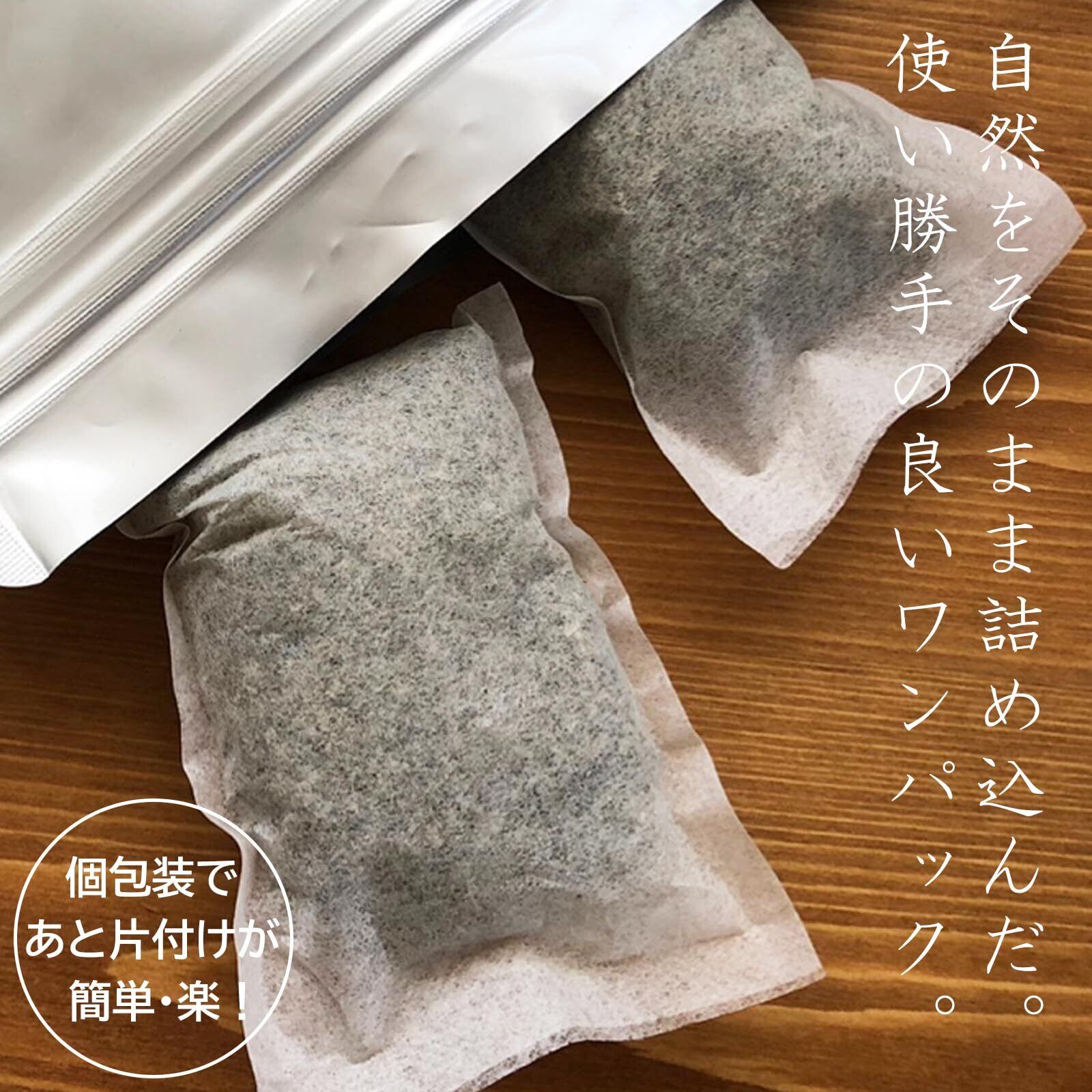 煮出し用パック(お風呂で揉みながら使用できます)タイプで、1パックにたっぷりと15gの粗めのパウダーよもぎを詰め込みました。