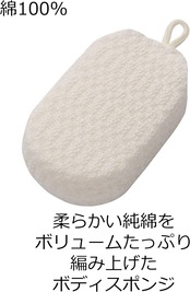 柔らかい純綿をボリュームたっぷりに編み上げたボディスポンジです。●天然成分のセラミドはお肌のバリア機能を保ち、お肌を柔らかく滑らかにするといわれています。