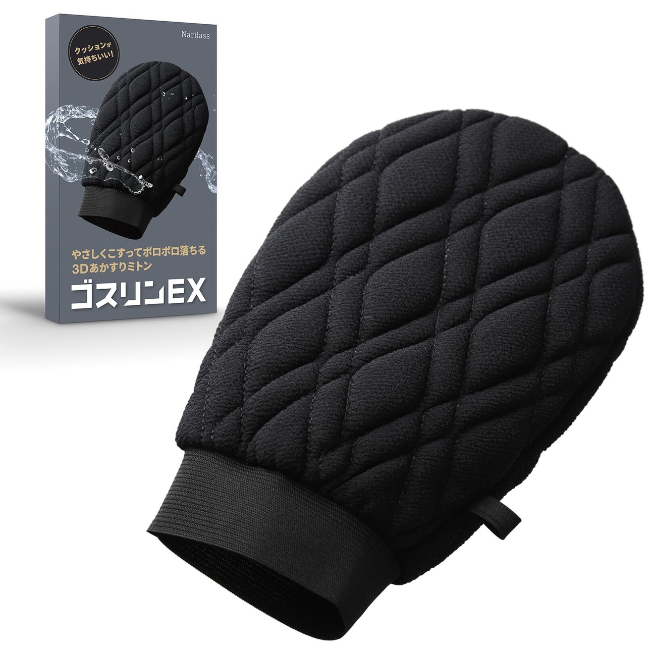 あかすりミトン ゴスリンEX リニューアル版 やさしく擦ってポロポロ落ちる3Dあかすりミトン 韓国式あかすり 男女共用 体臭予防 角質取り Narilass