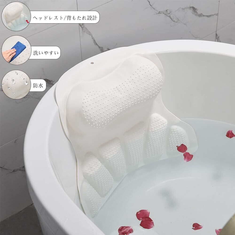 Guluto バスピロー お風呂枕 お風呂 まくら 頭 首 背中 肩 サポー お風呂グッズ 防水 滑り止め 強く吸盤付け 丸洗い可能 フック付 マッサージ リラックスに最適 バスグッズ スパギフト (ホワイト)