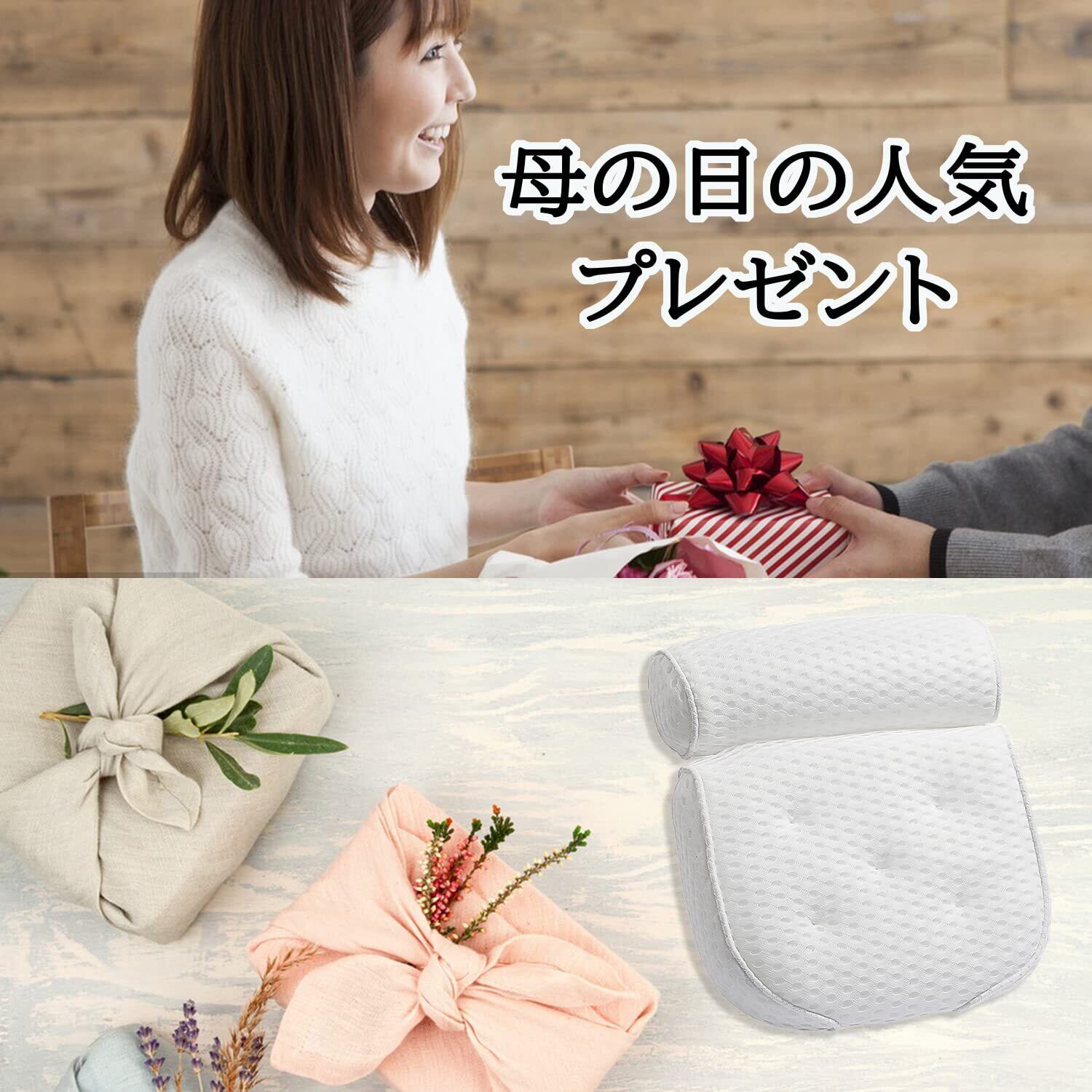 【新着商品】AIRMFJI バスピロー お風呂枕 まくら 4D通気メッシュ 柔らかい 吸盤付き 滑り止め 洗濯ネット付き 母の日のプレゼント人気 半身浴 バスタブ バス用品 リラックスグッズ プレゼント