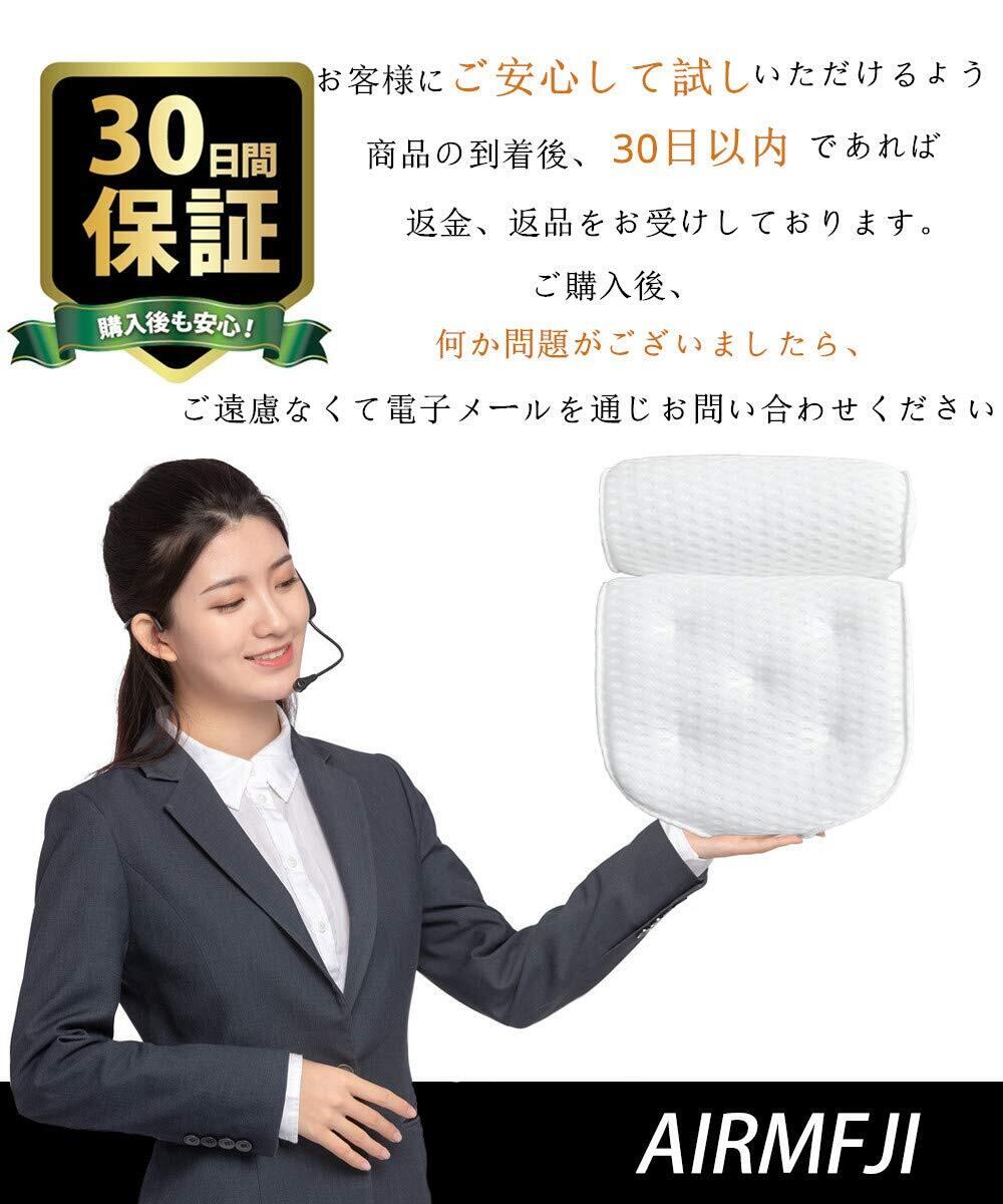 【極上のリラックスタイムを実現するバスピロー!】この「AIRMFJI バスピロー」は、入浴中のリラックスを追求した設計で、頭や首、肩をしっかりサポートします。4D通気メッシュ素材を使用しており、快適さと通気性を兼ね備え、長時間の使用でもストレスを感じません。