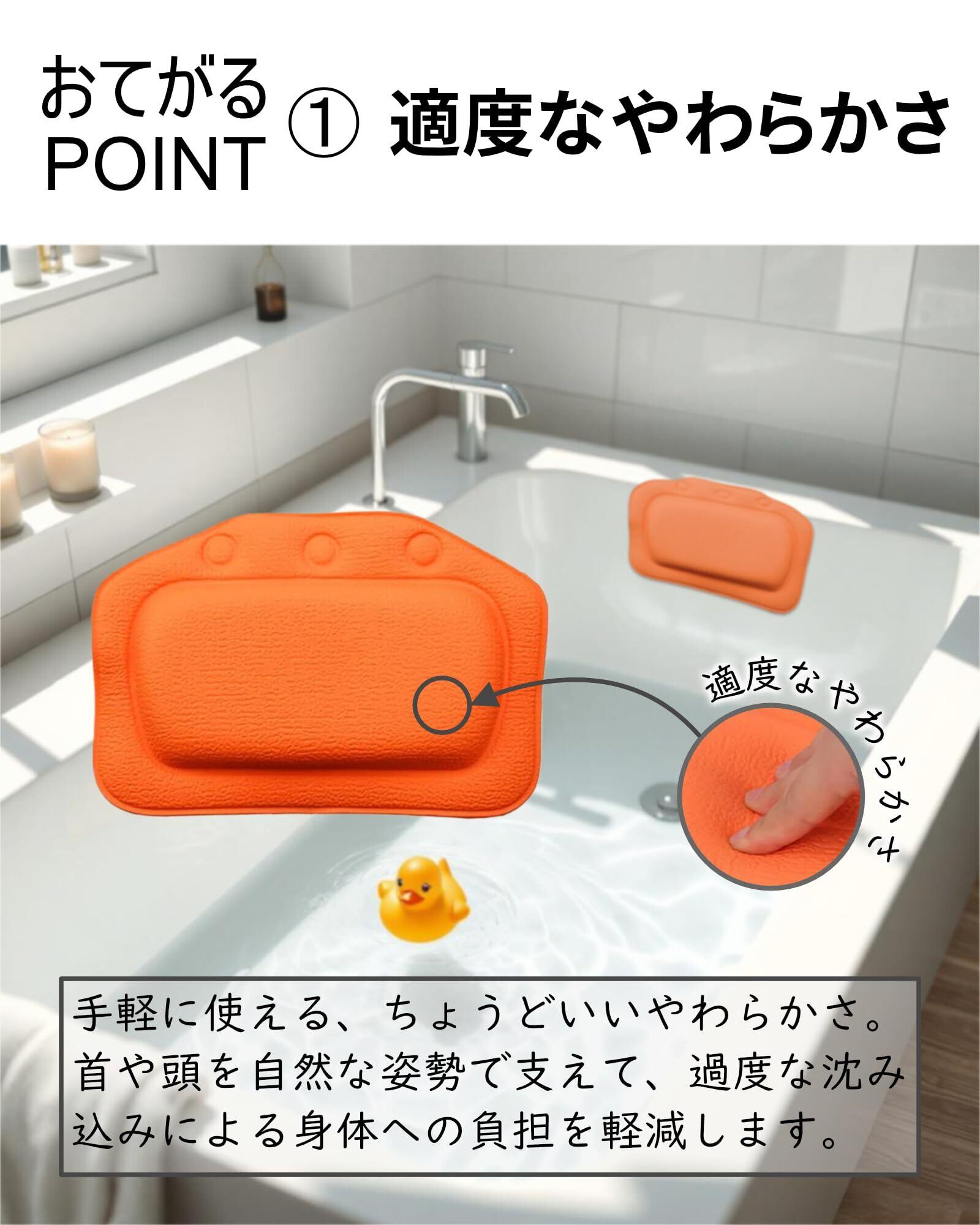 快適なバスタイム: 柔らかくて体に優しい素材でできており、お風呂でリラックスしながら頭を楽に支えられます。