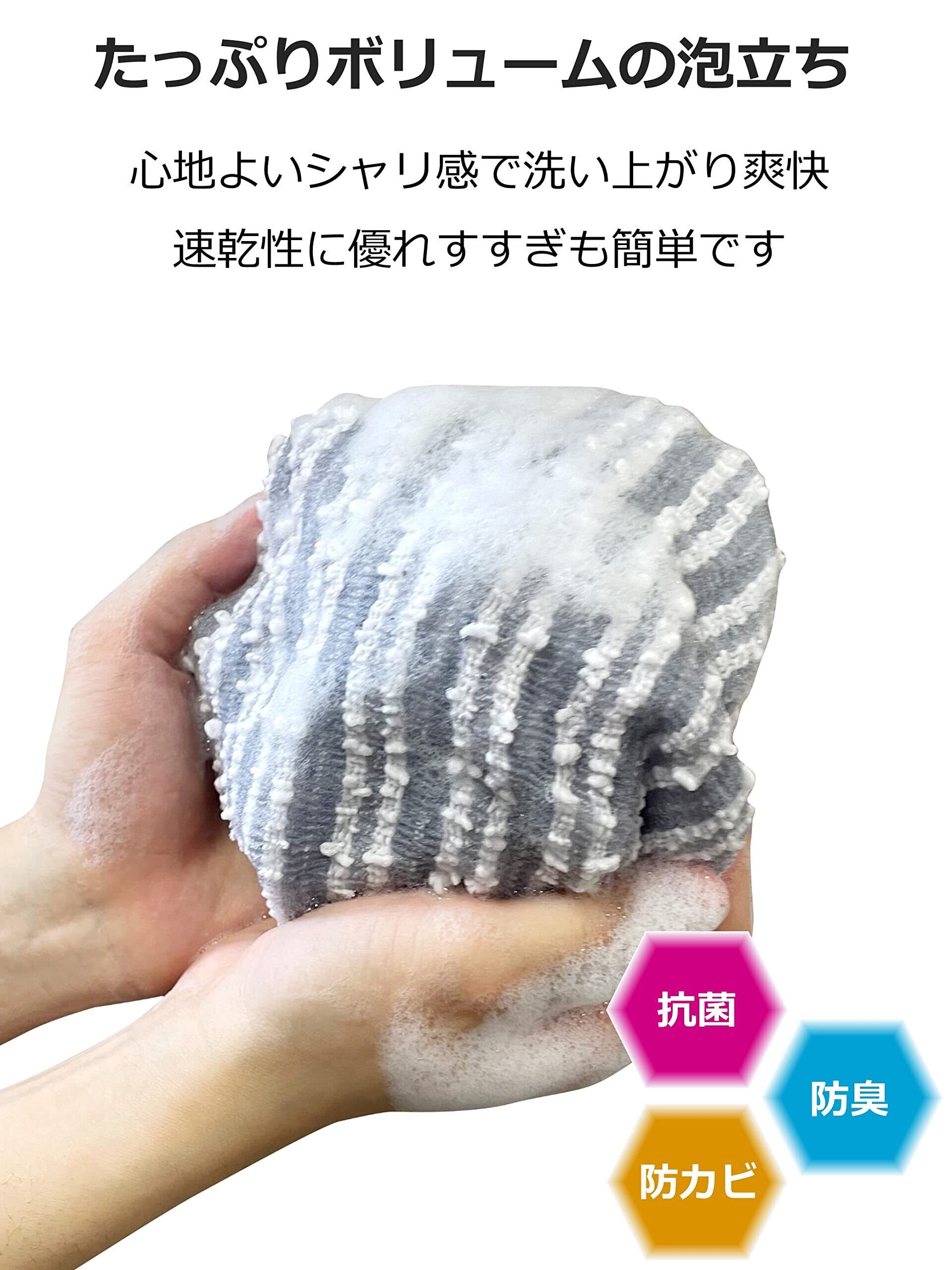 【ダブルの効果で清潔感アップ!】抗菌・防臭機能を備えたこのタオルは、面倒な洗濯の手間を軽減しつつ、毎日の使用でも安心です。特に泡立ちが良く、ボディソープと組み合わせれば、楽しく効果的に汚れを落とすことができます。泡で包まれた心地よい洗いごこちが特徴です!