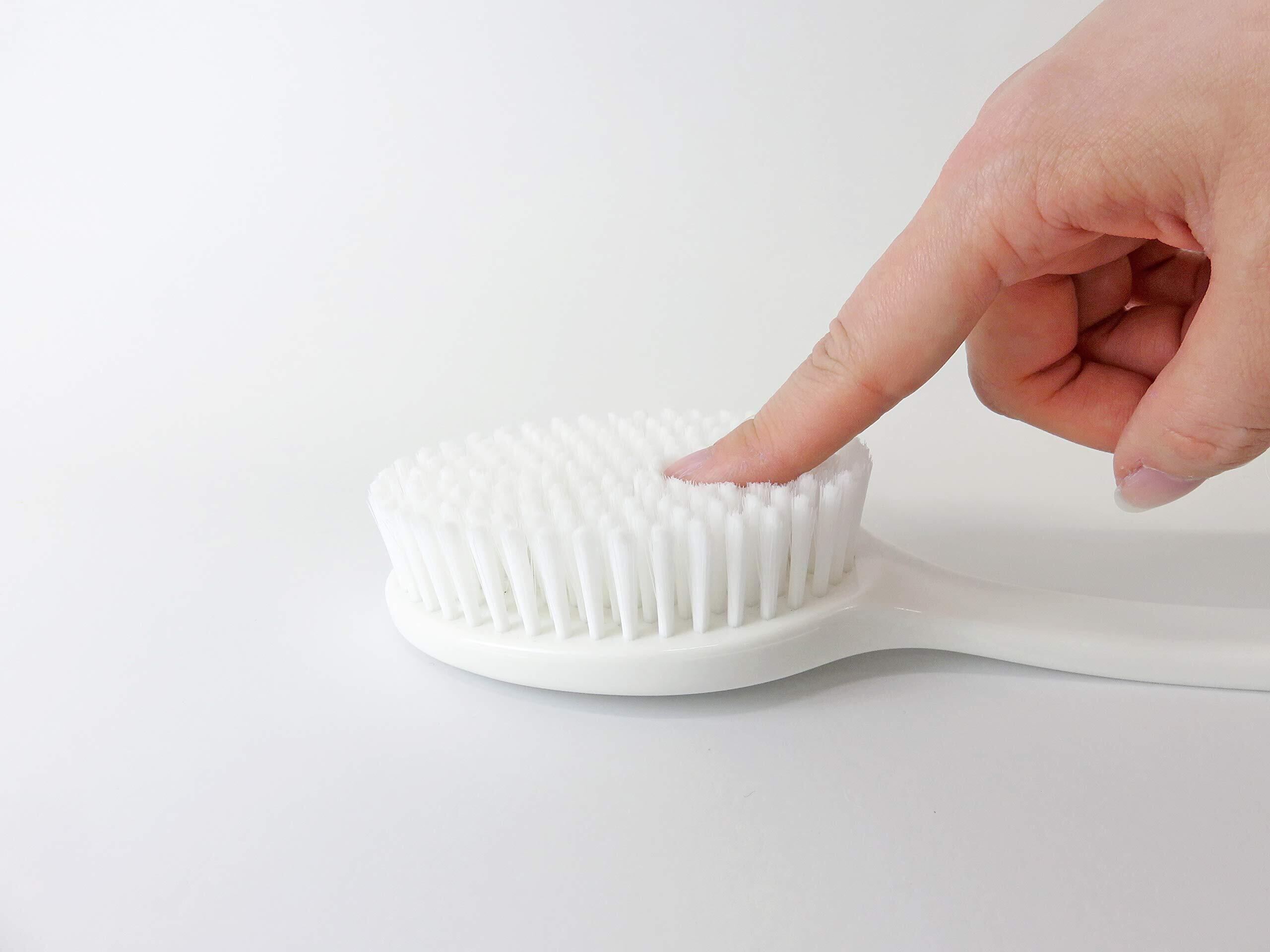 【使いやすさを重視!】持ち手はしっかりとしたグリップ感があり、軽量かつ操作しやすいデザインです。ロングハンドルを採用しているため、体の後ろの部分にも簡単にアプローチでき、力を入れずに使用できます。お風呂でのリラックスタイムが、さらに豊かなものになること間違いなしです。